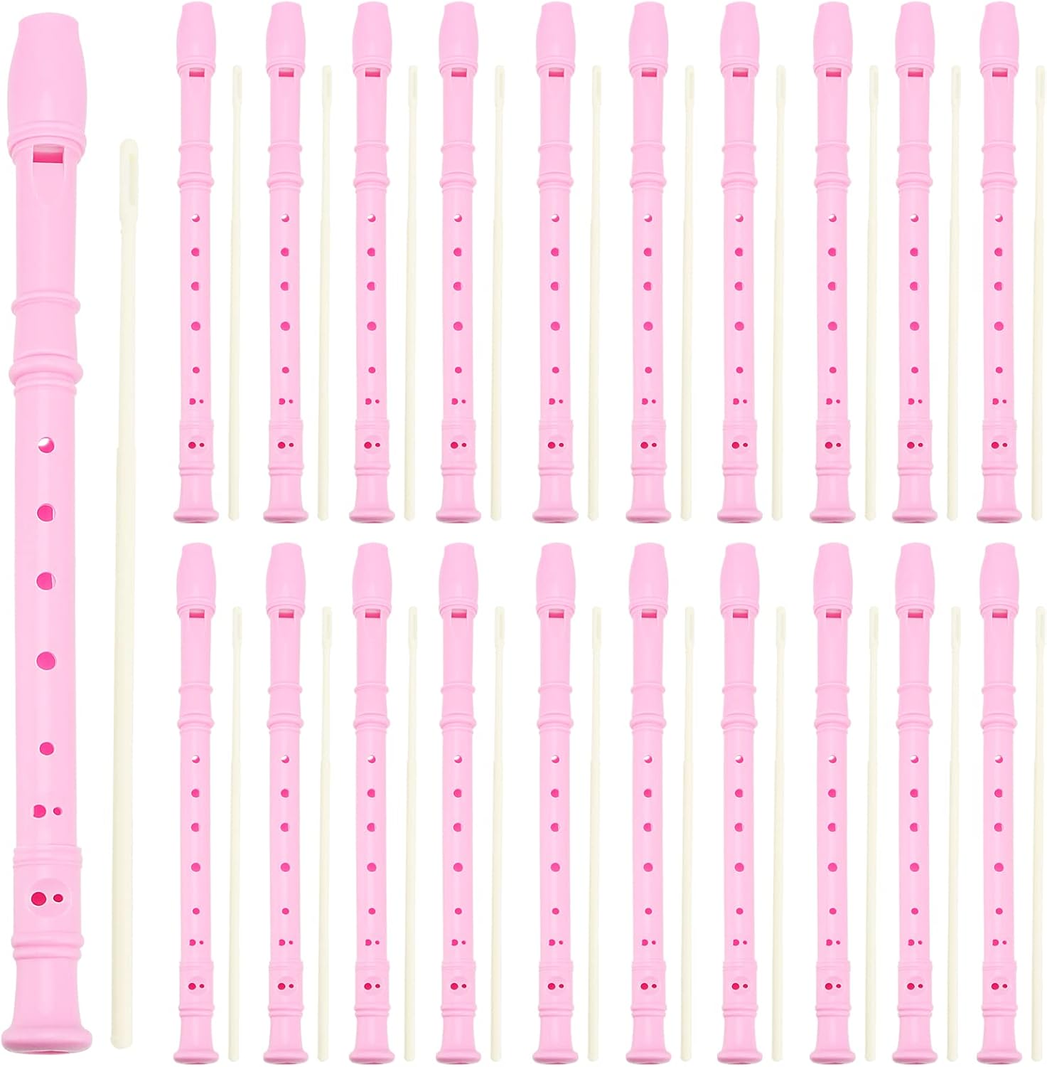 20 Pack 8 Hole Recorder Instrument Pink, Descant Soprano Recorder Bulk Recorder Musical Instruments with Cleaning Rod for Beginners