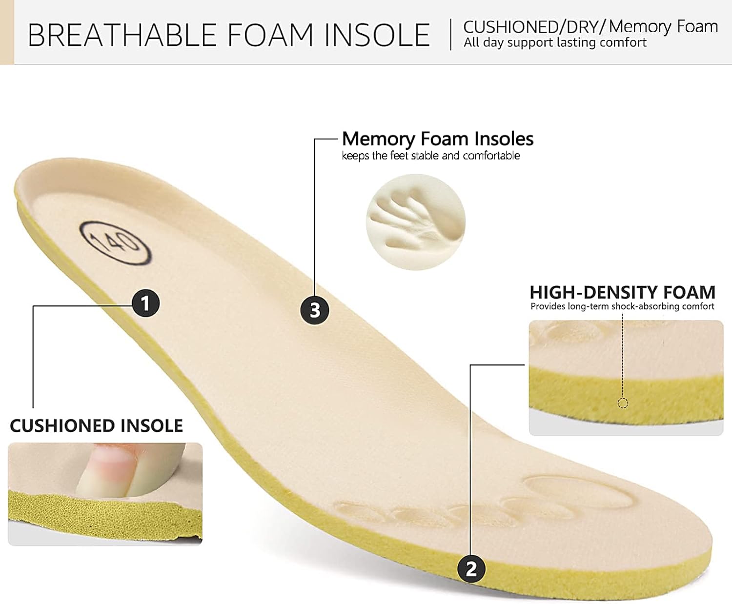 • Breathable Snug Fit: The memory insole with lightweight support fits the shape of the baby's feet and keeps the feet stable and comfortable. These super breathable materials allows kid's little feet to stay cool and dry, also easy to clean.