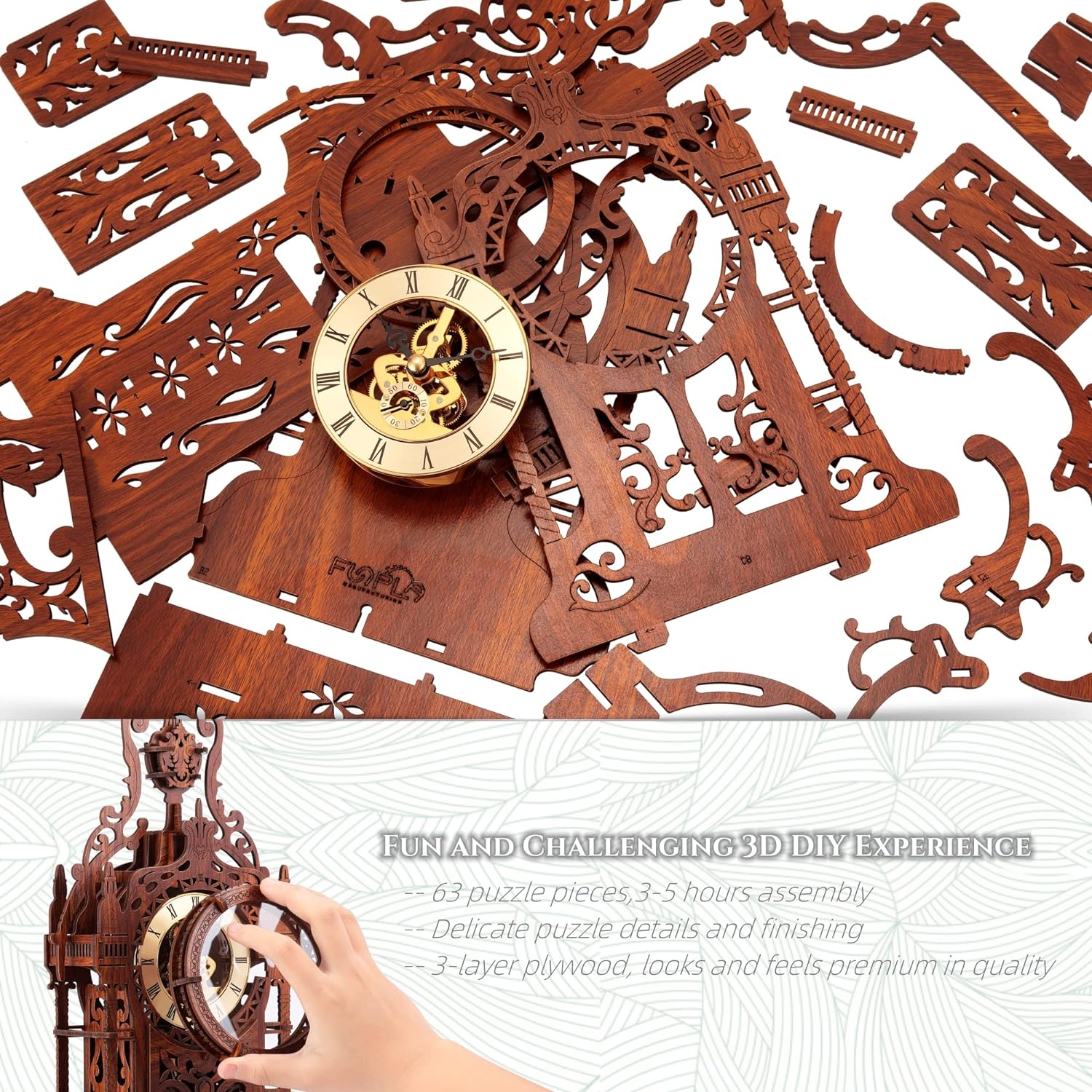 - 【LED light belt for Impressive lightening】With brightness-adjustable LED light belt(48 LEDs-yellow light), this 3D model is not only a 3D DIY building project but also an eye-catching and useful desktop wooden ornament clock. It could glow beautifully in your room once finished and lights up. AA battery is required (not included)