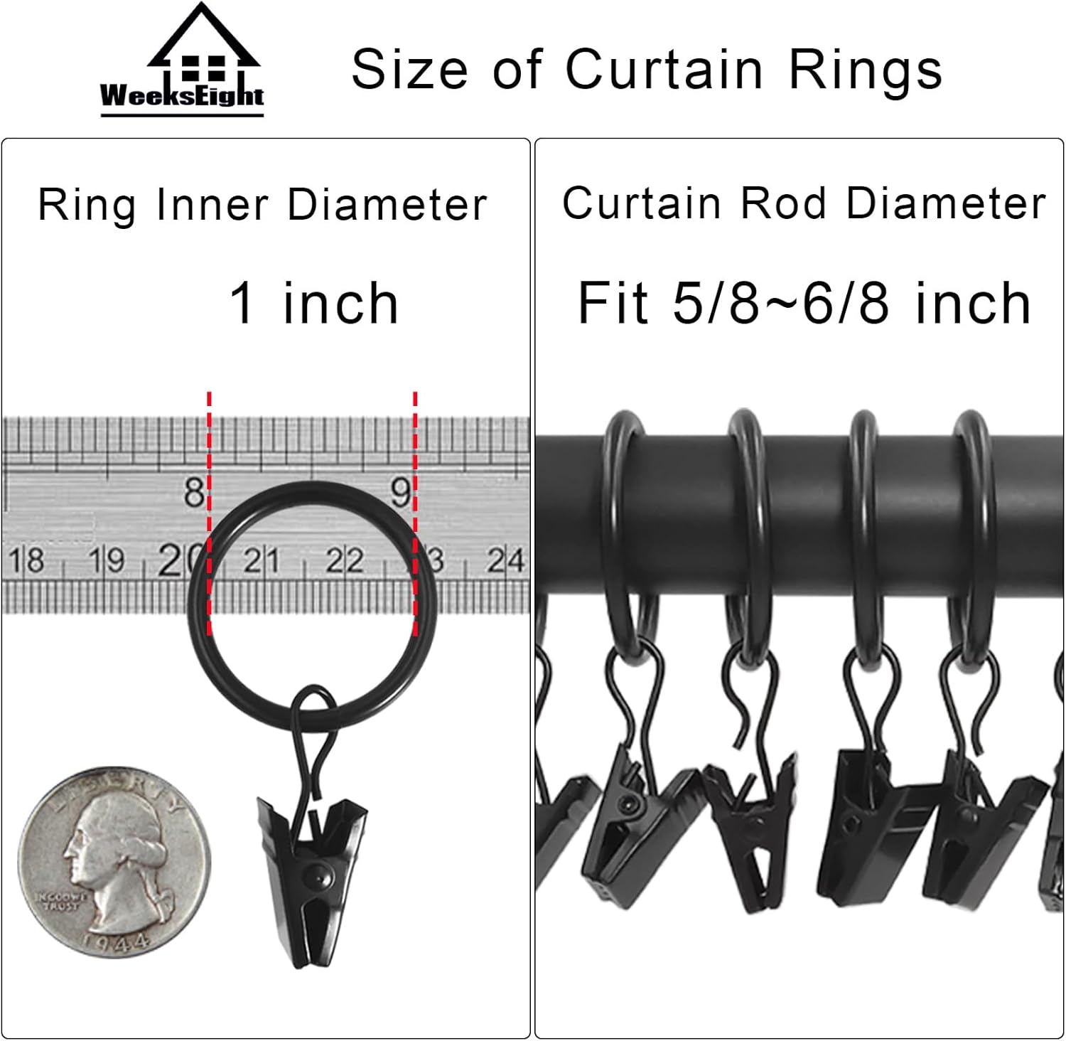 - 【Curtain Rings Slide Easily】Curtain rings eyelet inner diameter 1 in, drapery rings with clips for used in ones 1 in curtain rod and that’s the perfect size, the curtains slide easily, multiple times a day and function perfectly, make your life full of fun.