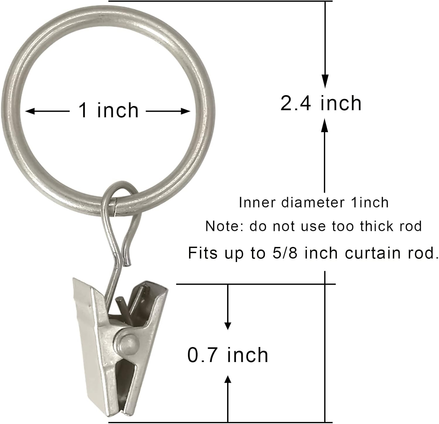 - 【Curtain Rings Slide Easily】Curtain rings eyelet inner diameter 1 in, drapery rings with clips for used in ones 1 in curtain rod and that’s the perfect size, the curtains slide easily, multiple times a day and function perfectly, make your life full of fun.