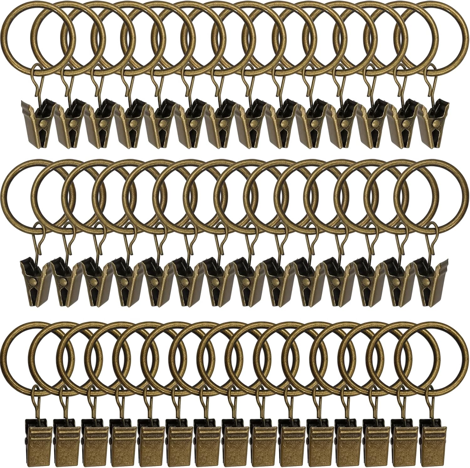 44 Pack Bronze Curtain Rings with Clips, Curtain Hooks Hangers Clip Rings for Hanging Drapes Bows Hat, Drapery Rings 1 in I D, Fits up to 5/8 in Diameter Curtain Rod.