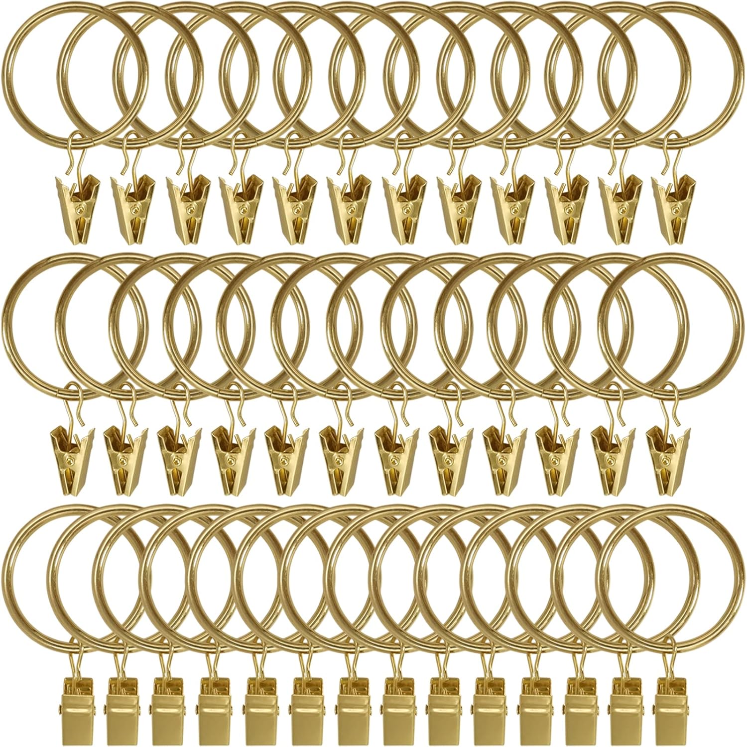 40 Pack Gold Curtain Rings with Clips, Curtain Hooks Hangers Clip Rings for Hanging Drapes Bows Hat, Drapery Rings 1.5 in I D, Fits up to 1.2 in Diameter Curtain Rod.