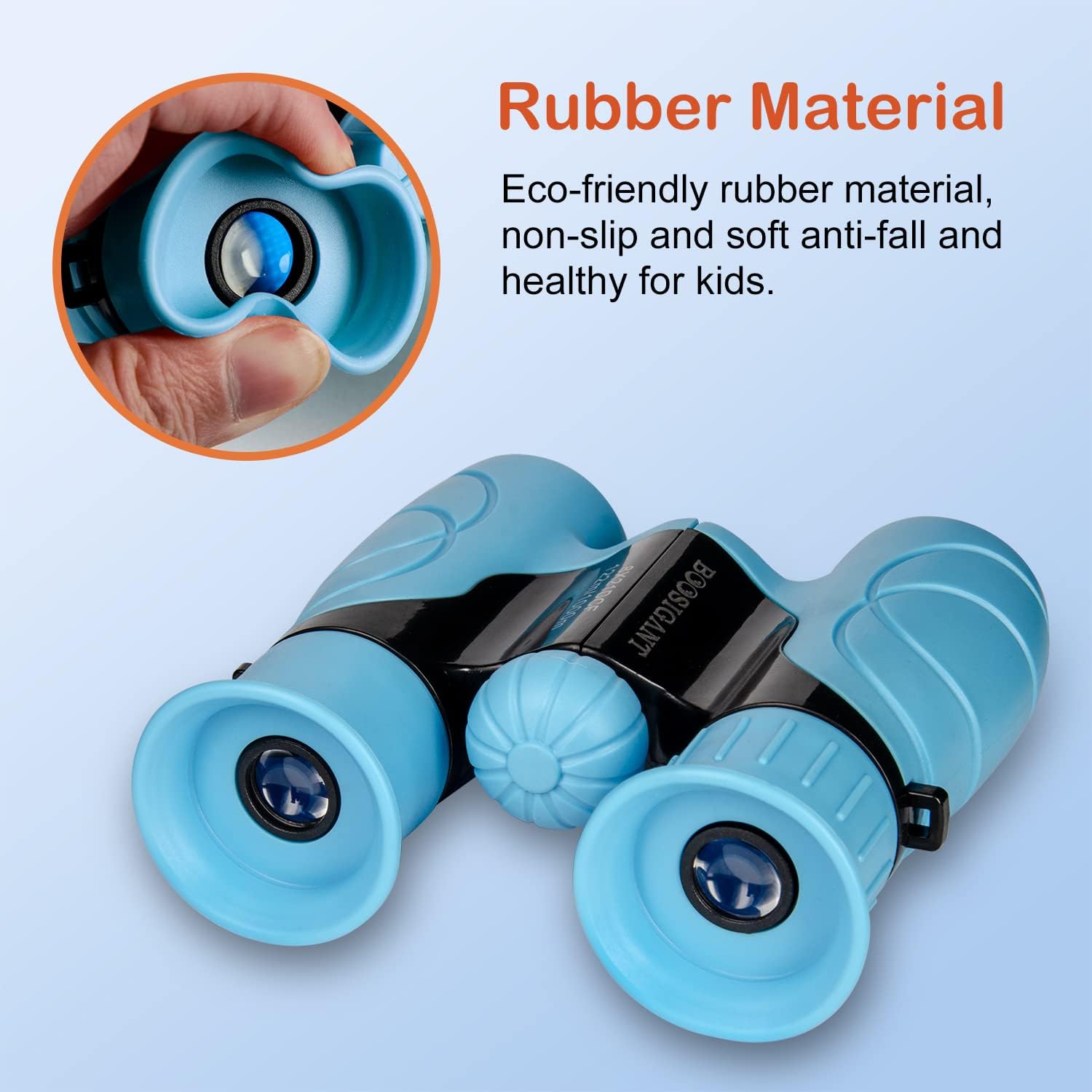 - Powerful Real Binoculars: Boosigant Binoculars are more than a toy. The BAK 4 Porro Prism blue layer coated deliver sharp and crystal clear images with no distortion. Your inquisitive little explorer will impressed at 8X closer views with the 7° viewing angle. These compact binoculars are great gear for boys and girls to use outdoor sports & games.