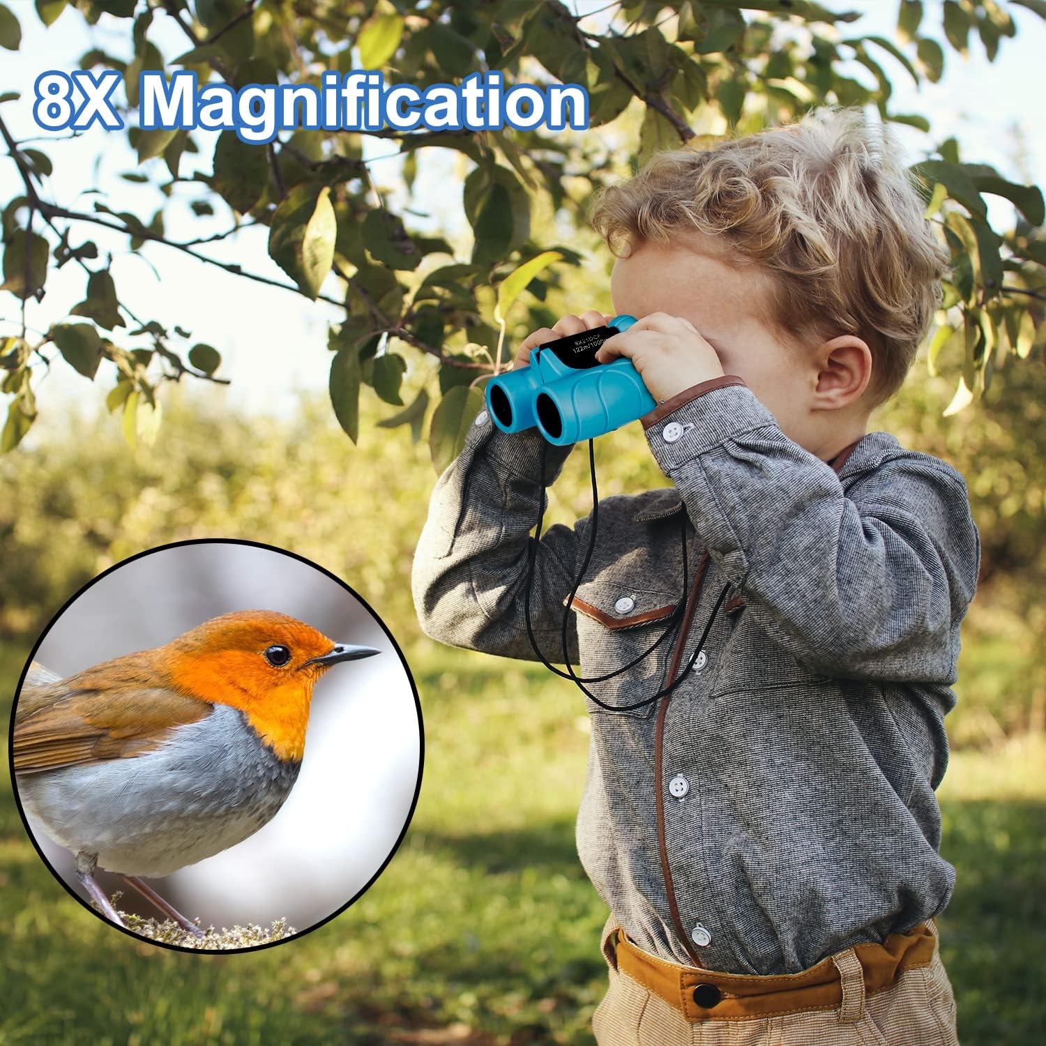 Binoculars for Kids 8x21, Gift for 3-12 Years Boys & Girls, Compact Kids Binoculars High-Resolution Shockproof Mini Binoculars for Bird Watching, Hiking, Camping, Travel Blue 302