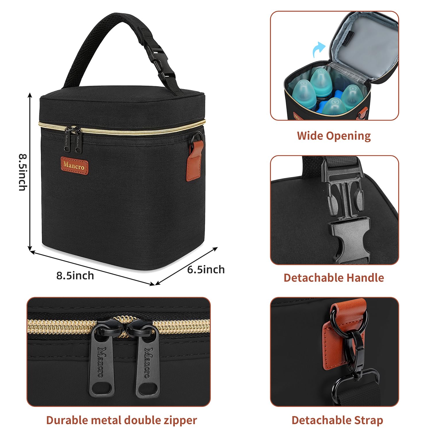 Mancro Breastmilk Cooler Bag Travel, Fits 4 Baby Bottles Up to 9 Ounce, Baby Bottle Bag with Ice Pack, Insulation Breast Milk Cooler Travel, Black