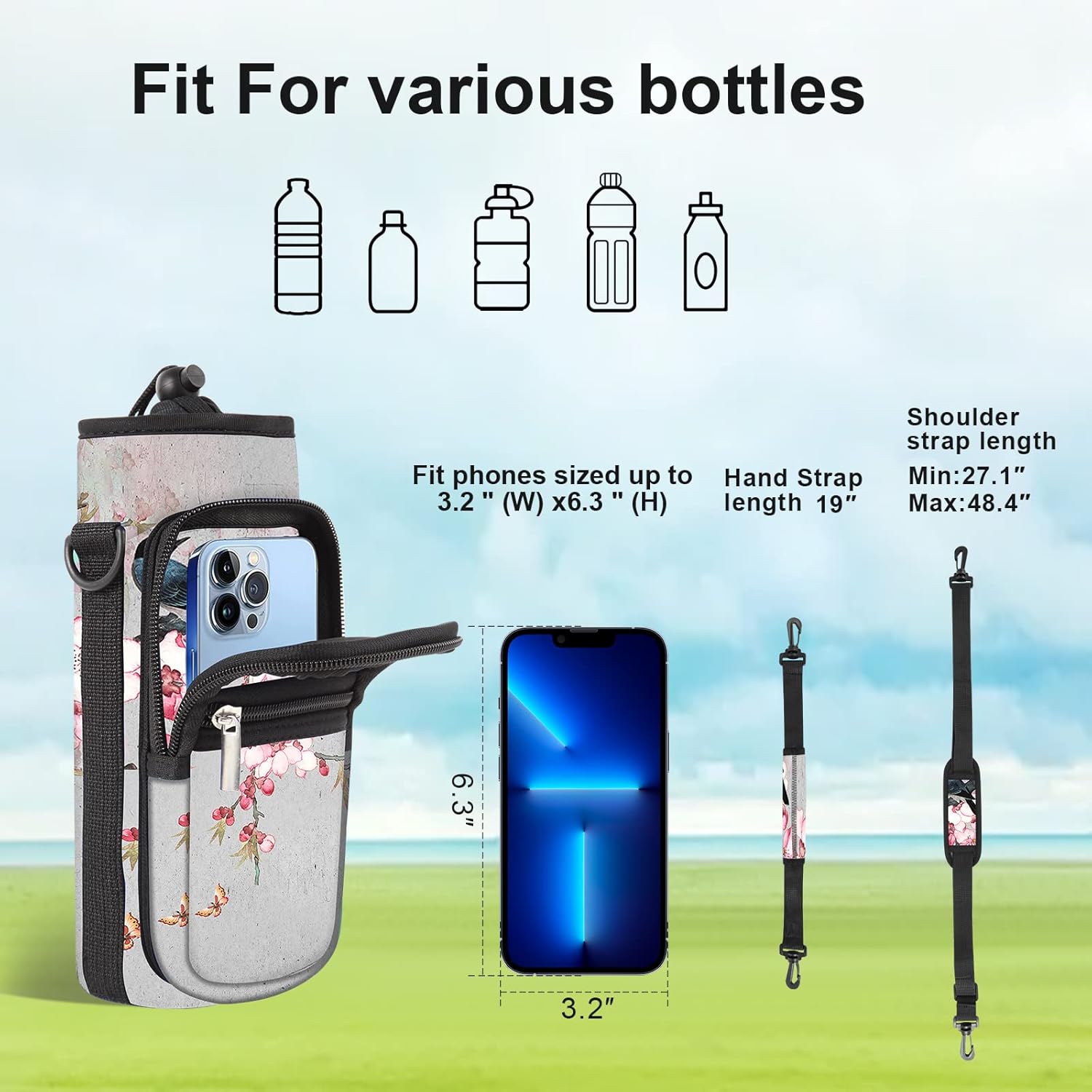 25/32/40/64oz Water Bottle Bag Holder Carrier-Insulated Crossbody Sling Case Sleeve with Strap & Pockets for Men Women Gym Cycling Travel Walking Hiking Camping