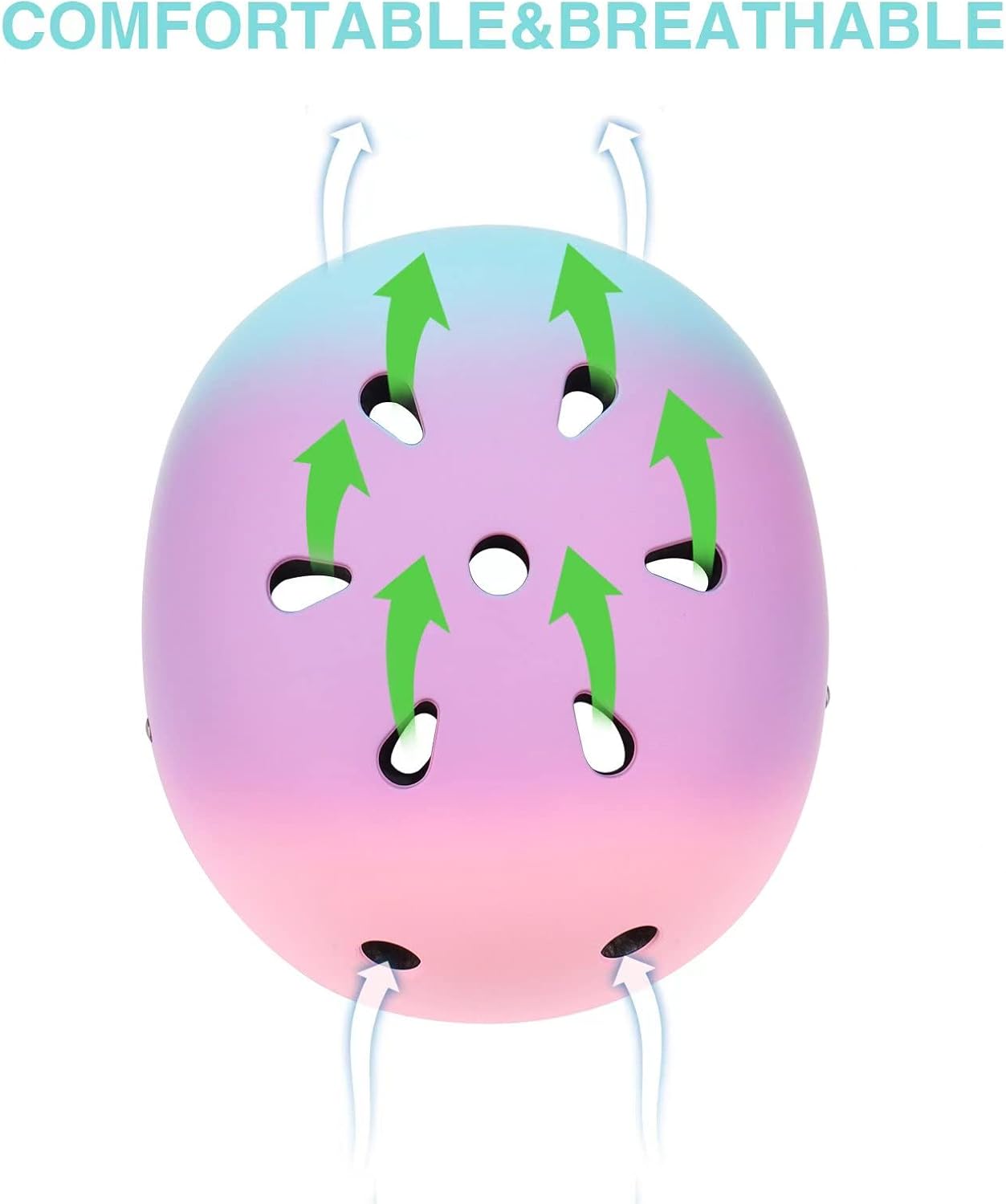 - ★【COOL, COMFORTABLE AND LIGHTWEIGHT】- Our kids color bike helmets have 11 vents that help reduce sweating and keep your child cool even on very hot days. The soft padding inside is removable and washable. Weighing only 0.7 pounds, it's very light, so your child won't even know they're wearing a bike helmet while playing sports.
