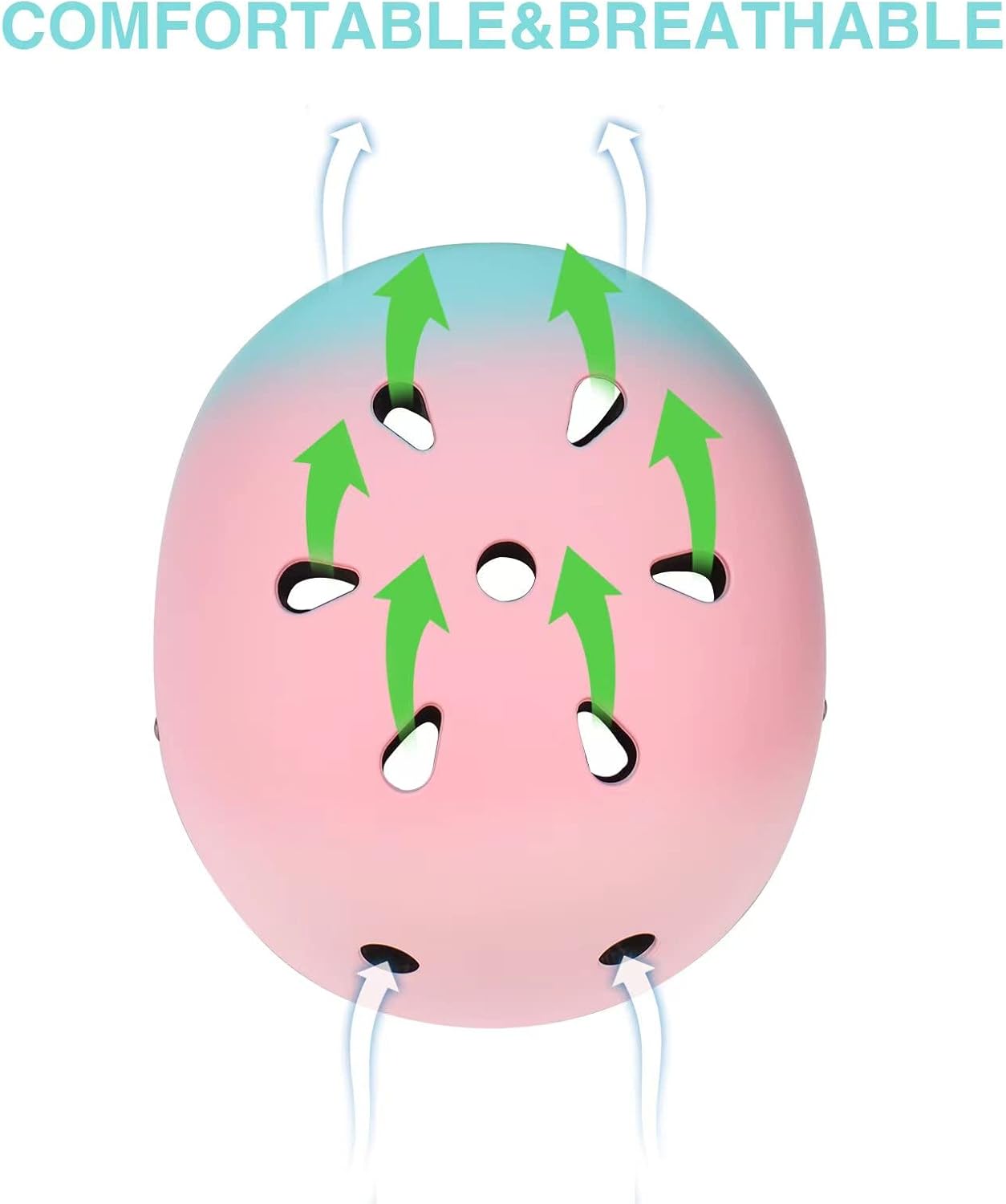 Color Gradient Adjustable Kids Bike Helmet Toddler Helmets for 3-5-8-14 Years Kids Girls Boys Youth Bicycle Helmet for Scooter Balance Bike Roller Skating Skateboard
