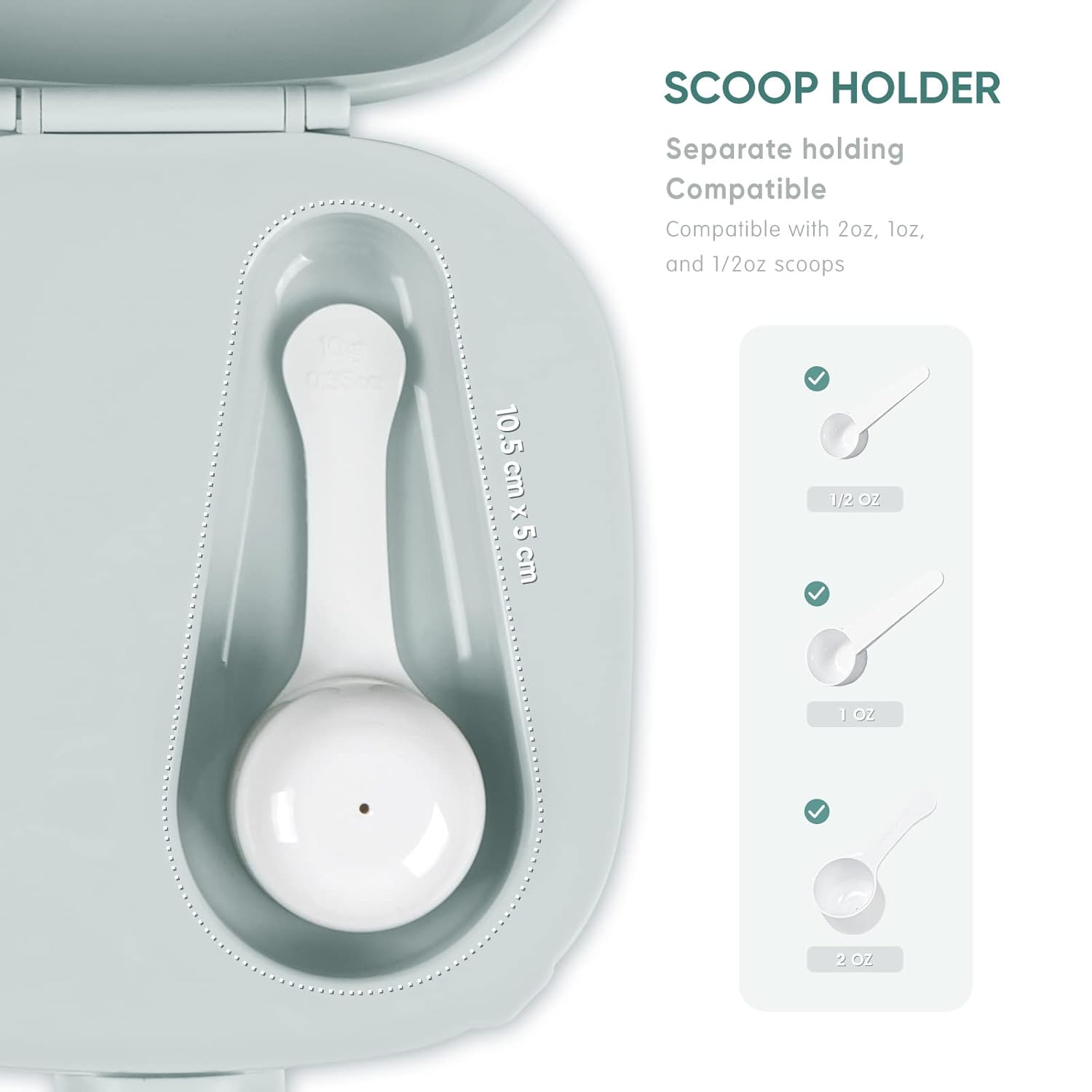 - FORMULA DISPENSING SCOOPS - Our designer specially sized this dispensing scoop 2 ounces, easily make 2oz of milk, this scoop is the same size as most major baby formula brands. The handles easy to grip, it helps you make the baby milk quickly and easily. and our container has a separator layer design to hold the scoop separately. If you have a special sized scoop, don't be worried, we designed this holding area loose enough to compatible with most other different sized scoops.