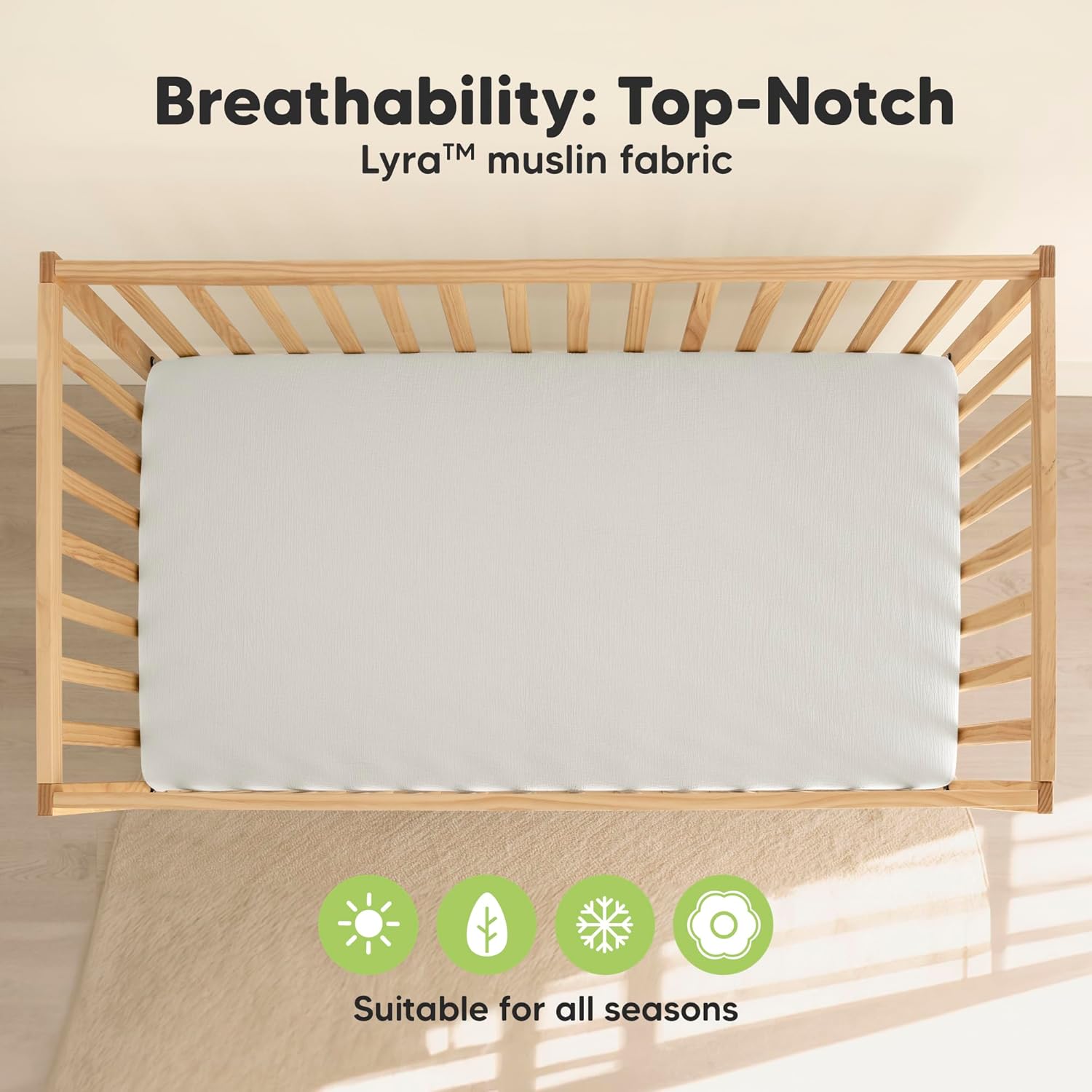 - Lyrically Soft & Breathable - KeaBabies Lyra Muslin Organic Cotton Crib Sheets Fitted keep your baby cozy all night. Exceptionally breathable crib sheets for all-seasons, these toddler sheets soothe baby like a lullaby for peaceful, restful sleep.
