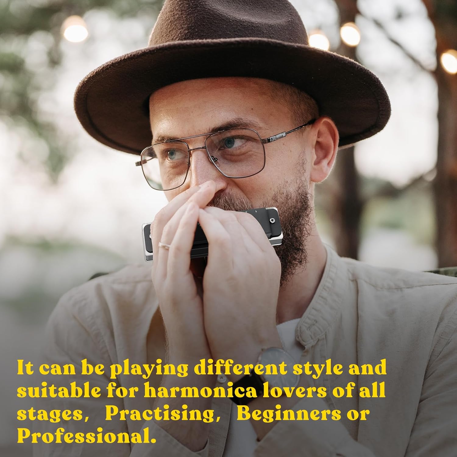 - 2.Easy to use: Airflow splitter and the built-in airflow splitter in the harmonica are conducive to maintaining stable airflow, making it easier for beginners to play easily and mastering more sound skills quickly.