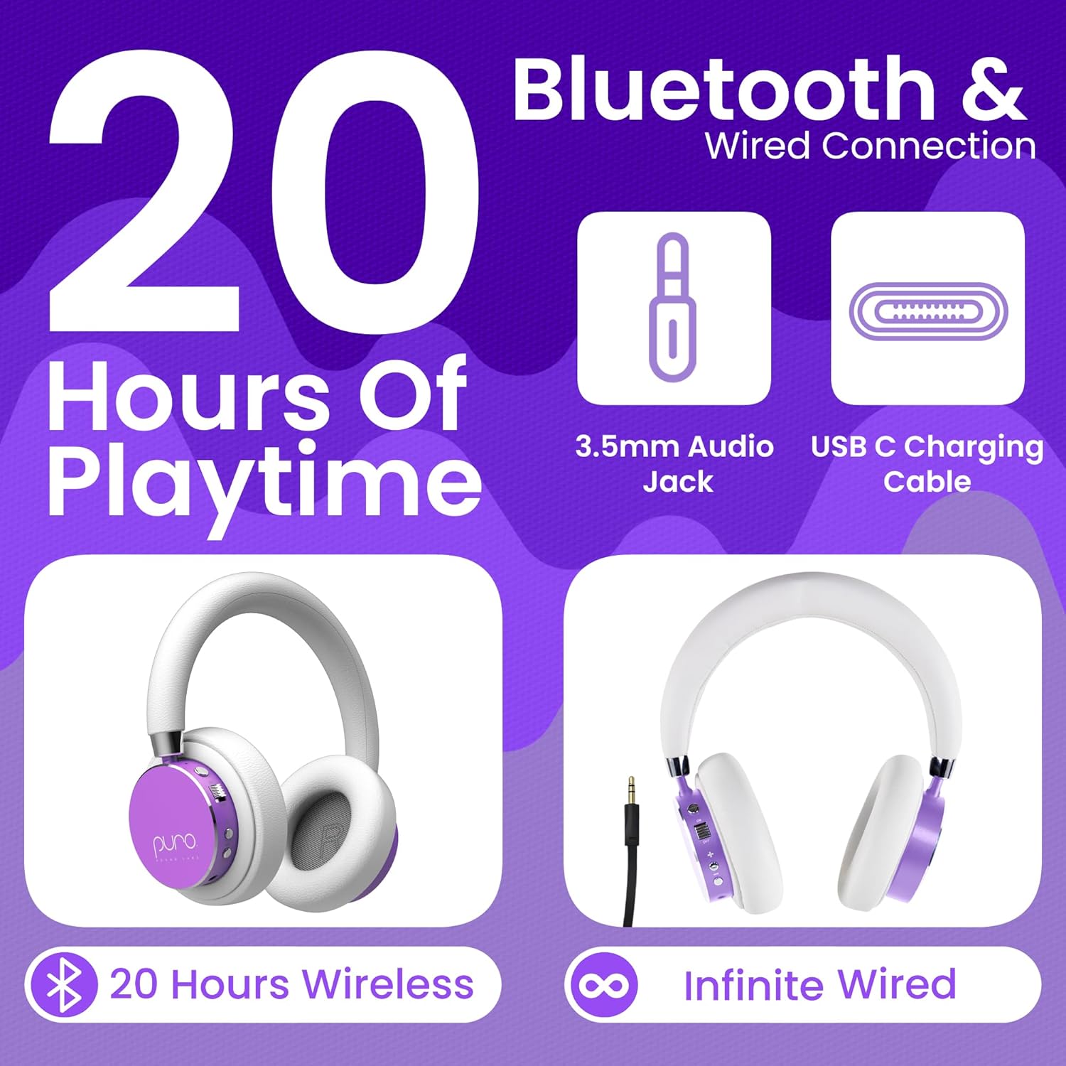 - STUDIO-GRADE AUDIO PERFORMANCE: Experience audio with our Puro Balanced Response Curve that offers clear vocals and deep bass, giving your child a great sound experience with kids Bluetooth headphones, all within an 85dB listening range.