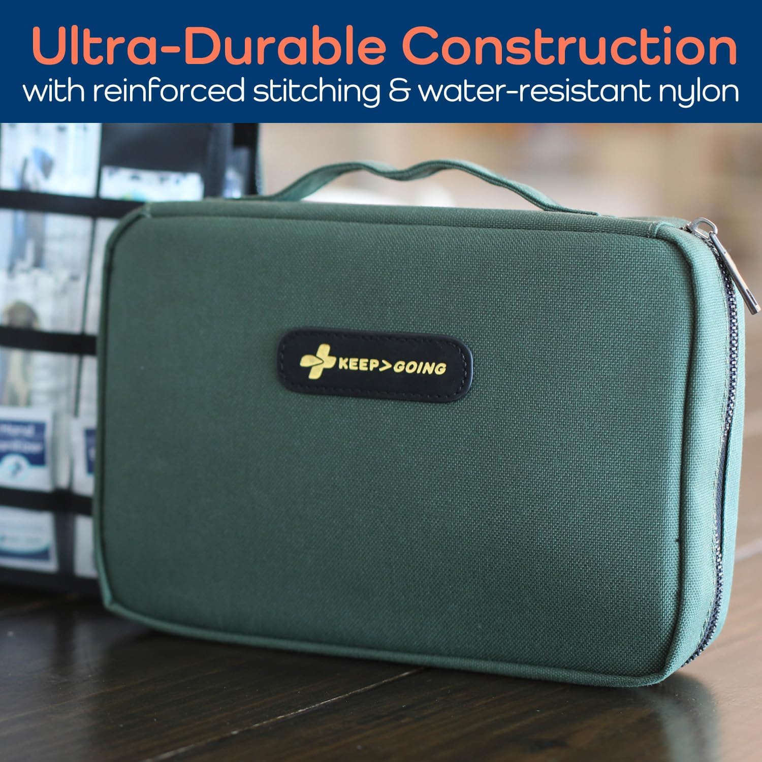 KeepGoing Large Home First Aid Kit for Kids – 270 Pc. for Car, Home, Dorm, & Boat with Latex-Free Bandages – 10 x 7 x 3.5 in. Travel First Aid Kit (Hunter Green)