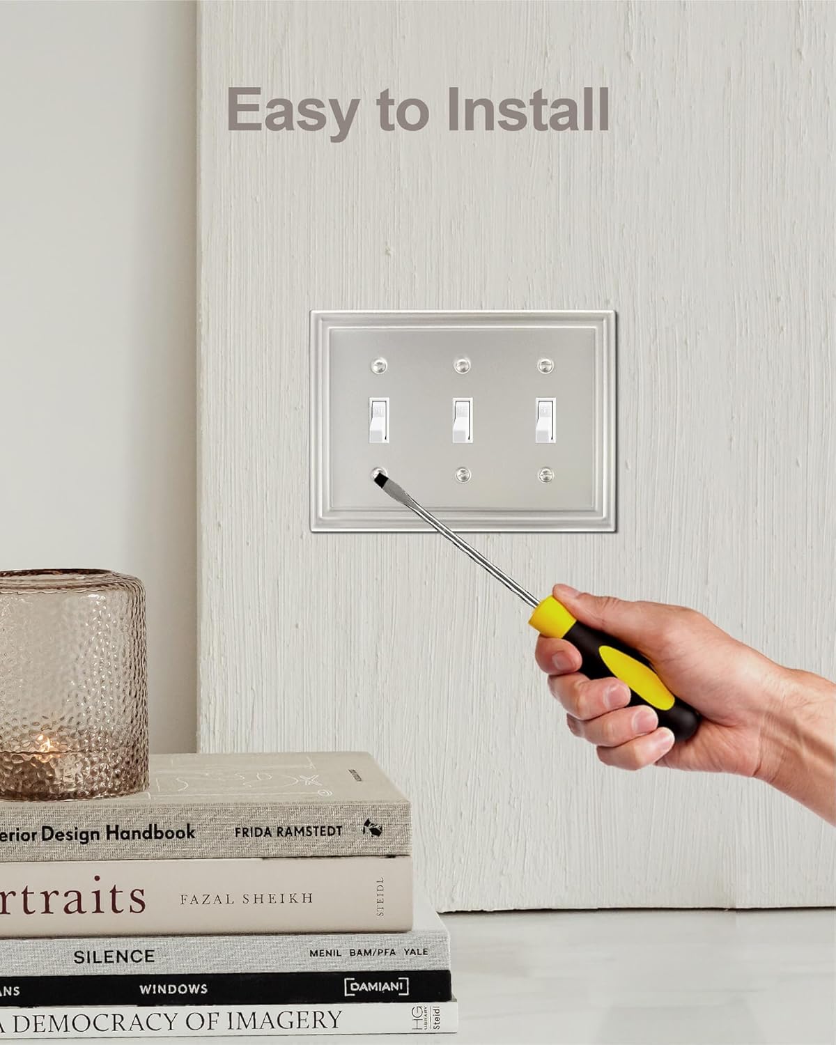 - [Wide Application]-Versatile and easy to match, the triple toggle wall plate complements any interior style. Whether it's modern, traditional, or contemporary decor, it blends in perfectly to complete your home's aesthetic