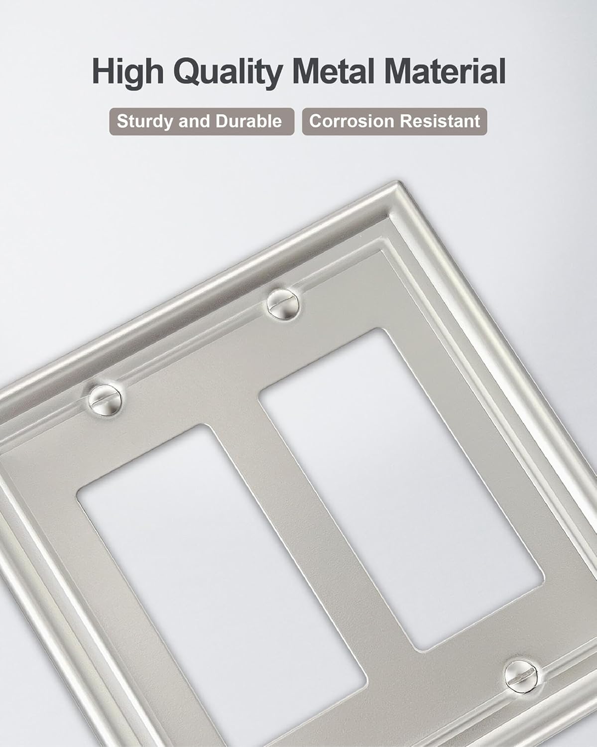 2-Pack Double Decorator Wall Plate, Satin Nickel Eletrical Outlet Cover Plate for Receptacle, Dimmer Switch, GFCI Outlet, Midsize, A035 Series