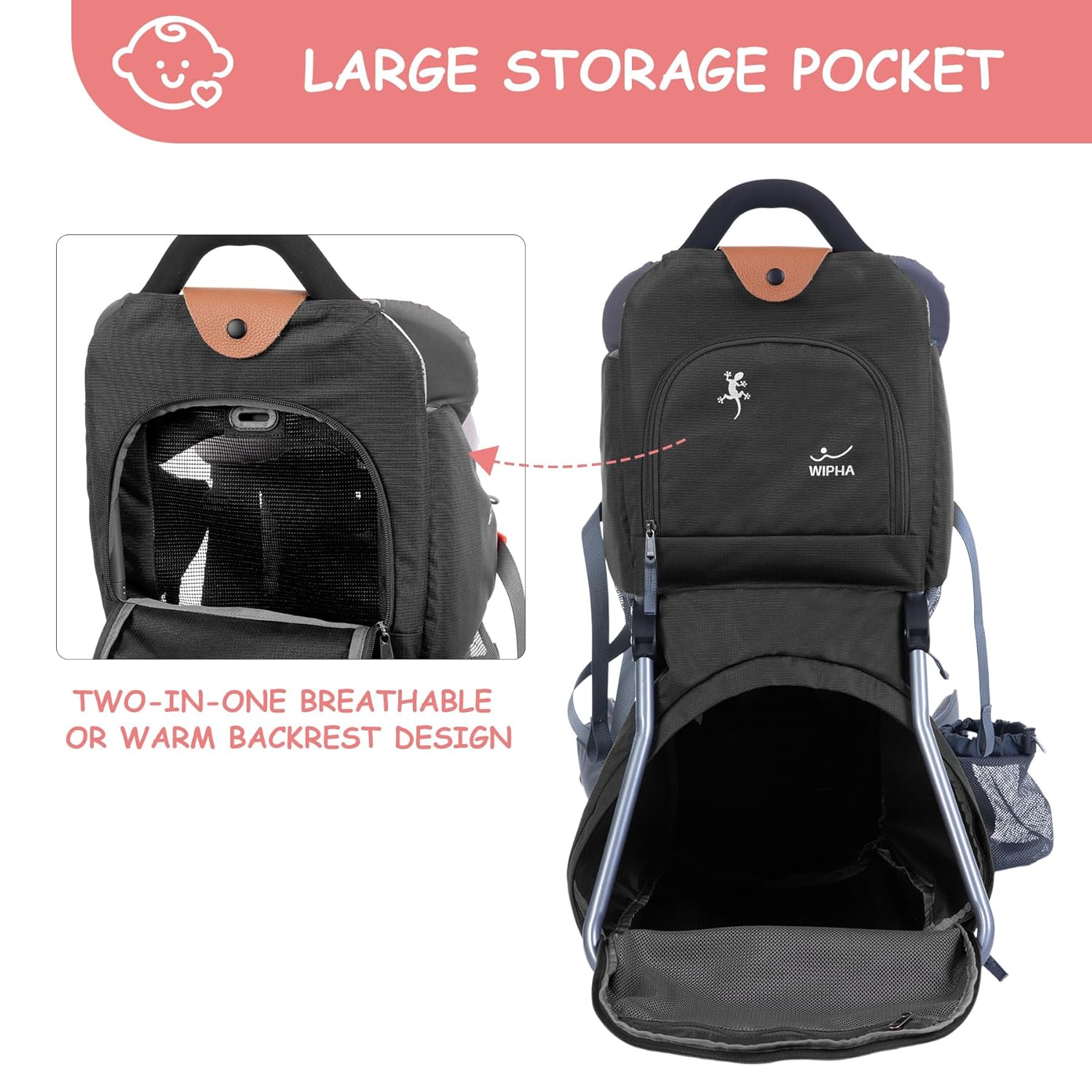 - DURABILITY AND CONVENIENT DESIGN: The WIPHA child carrier uses a sturdy foldable aluminum frame, which increases the stability and durability of the product. The carrier backpack is easily folded, easy to carry and space-saving, making it an ideal long-distance travel companion for you and your baby