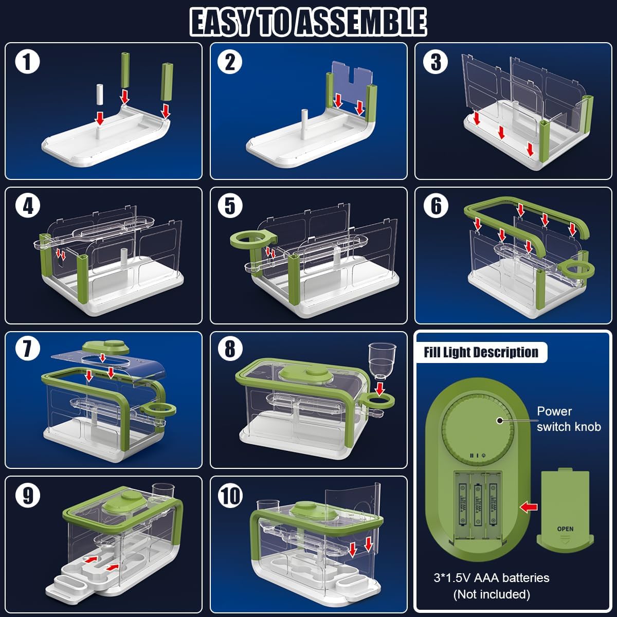 Kids Plant Growing Kit, Kids Gardening Greenhouse Growing Kit with Drip Irrigation and Grow Lights, Science STEM Toys Terrarium Kit for Boys Girls 3 4 5 6 7 8 Year Old,Kids Flower Growing Kit