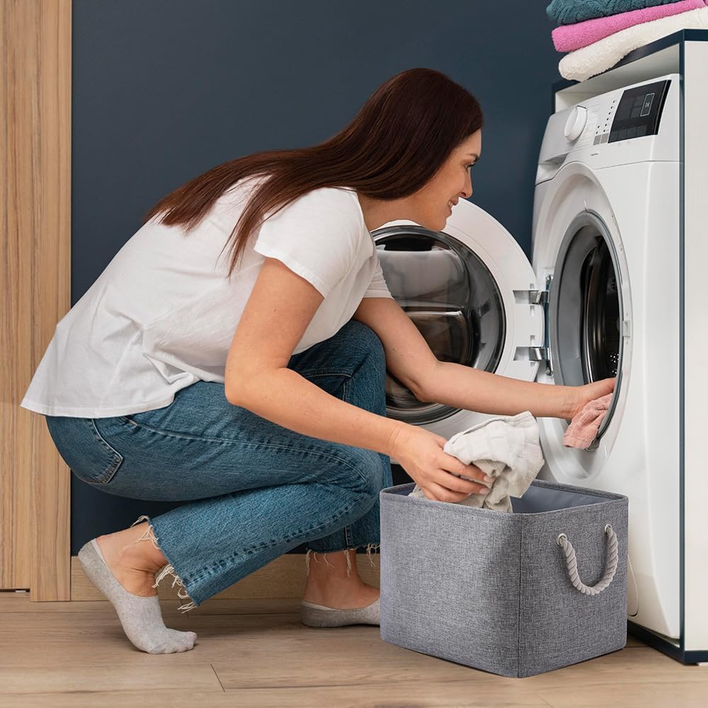 TheWarmHome Storage Basket for Organizing - 16x12x12 inch 3 Pack Fabric Storage Cubes, Cube Storage Bin for Shelves Closet Organizer Cloth Gift Toy (Grey)