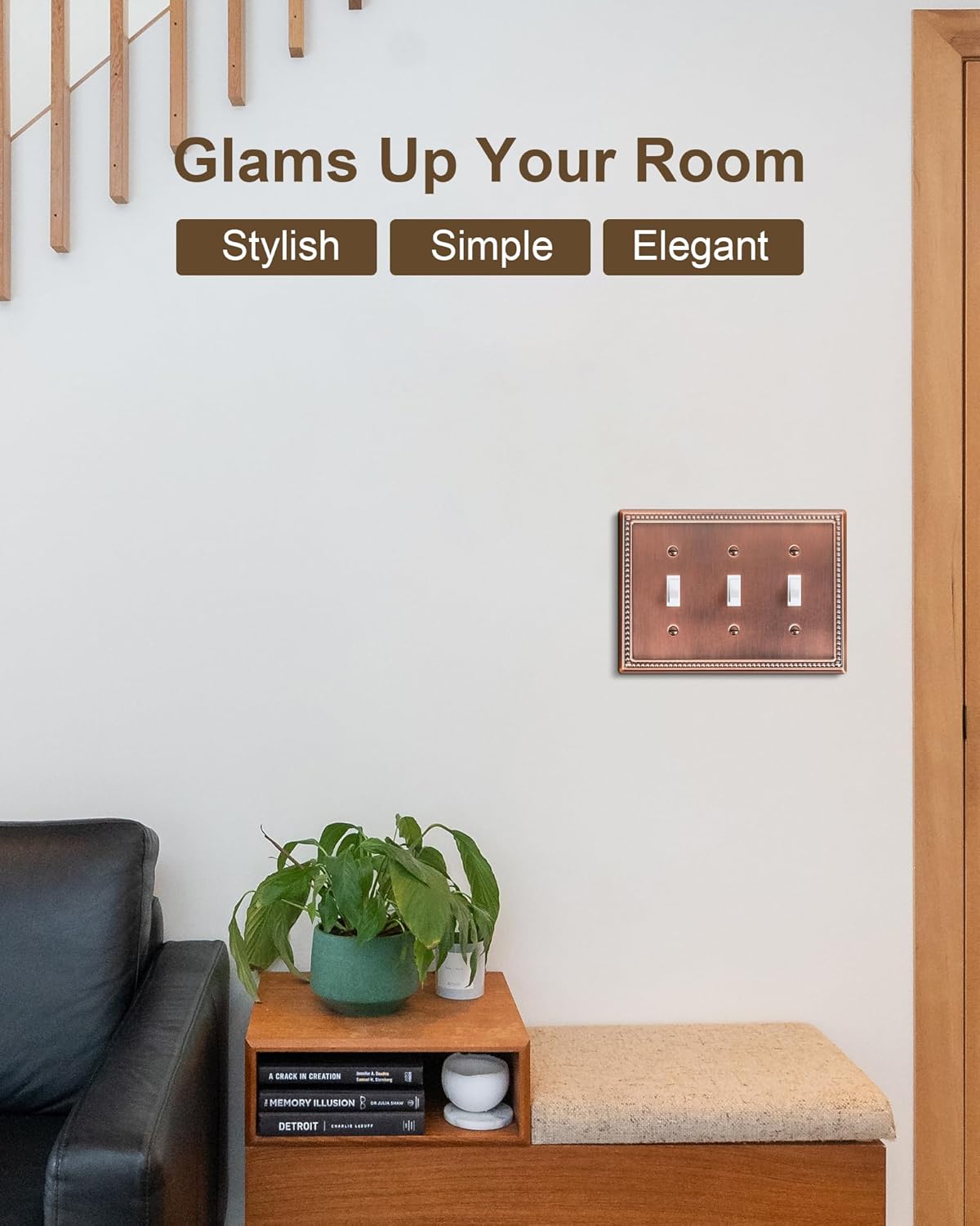 - Versatile & Durable - Constructed from thick and sturdy metal, the triple light switch cover plate ensures long-lasting durability and sturdiness. It is resistant to high-impact, tarnishing, and corrosion, making it not easy to break. Rest assured that this wall switch cover will remain a stunning addition to your home for years to come.