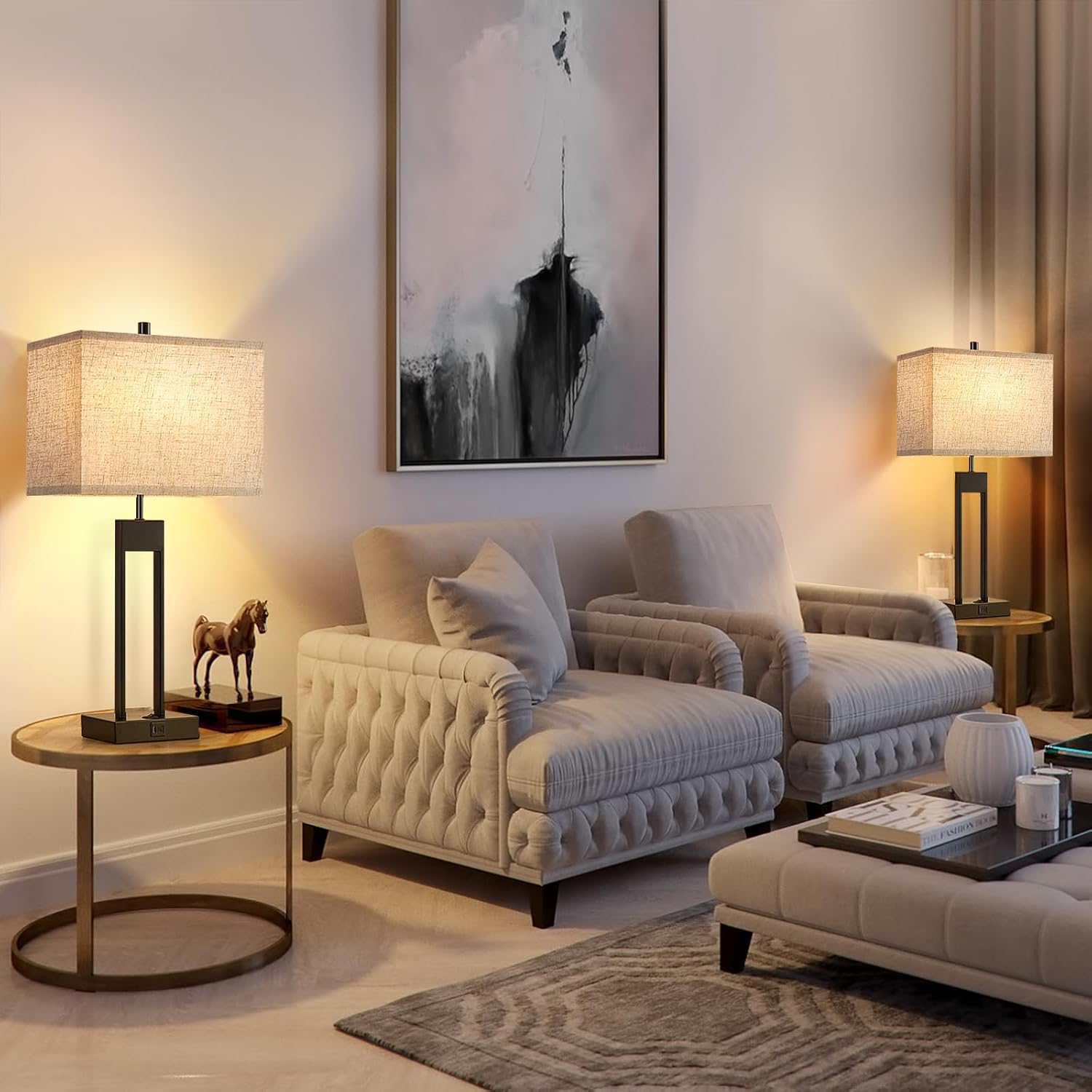 - Included 2 Light Blubs: This table lamp for living room comes with two dimmable 9W LED bulbs, and the brightness is 800 lumen. Eliminating the need to purchase extra bulbs. Give stable, soft lighting without flicker or glare, protecting your eyes. Perfect for the nightstand, bedroom, and living room