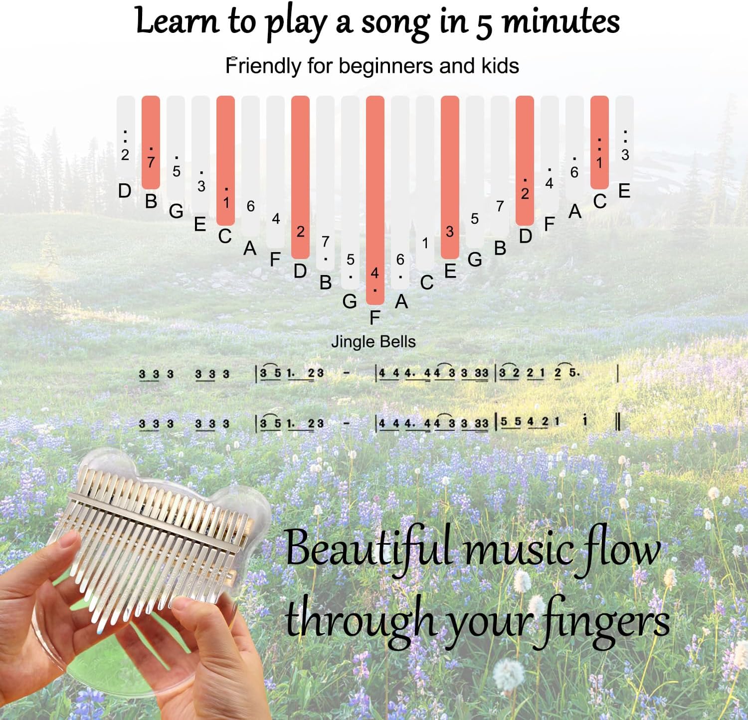 - High Quality Material-Kalimba thumb piano is handcrafted with high-quality clear acrylic and ore steel bars, which ensures that you can play beautiful and pure music with this Kalimba.