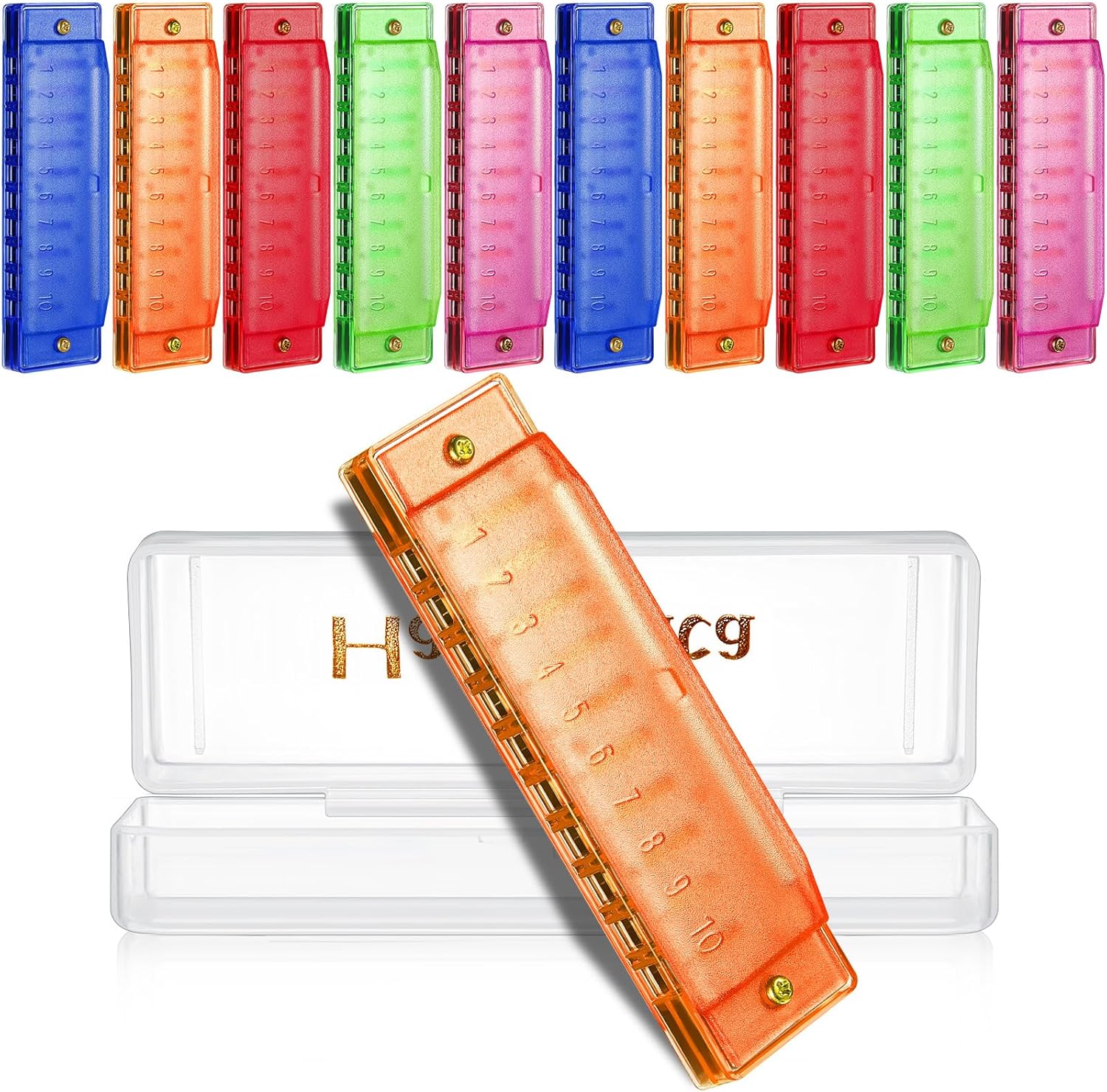 - Super Value Pack: you will receive 10 pieces of our 10 hole harmonicas for kids in 5 colors, including red, green, blue, pink, orange, rich in color and abundant in quantity, sufficient to satisfy your daily use, replacing and sharing demands, and each of our harmonica is paired with a translucent plastic case, it can prevent dust from entering the interior of the harmonica and affects its use