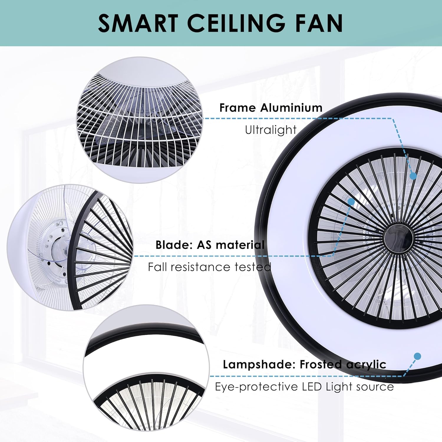 - 6 Wind Speeds & Quiet DC Motor: This bladeless ceiling fan with lights remote control has 6 wind speeds to adjust, providing comfortable, natural & cool wind. The High-Quality Copper Motor runs smoothly, with a strong airflow and no noise