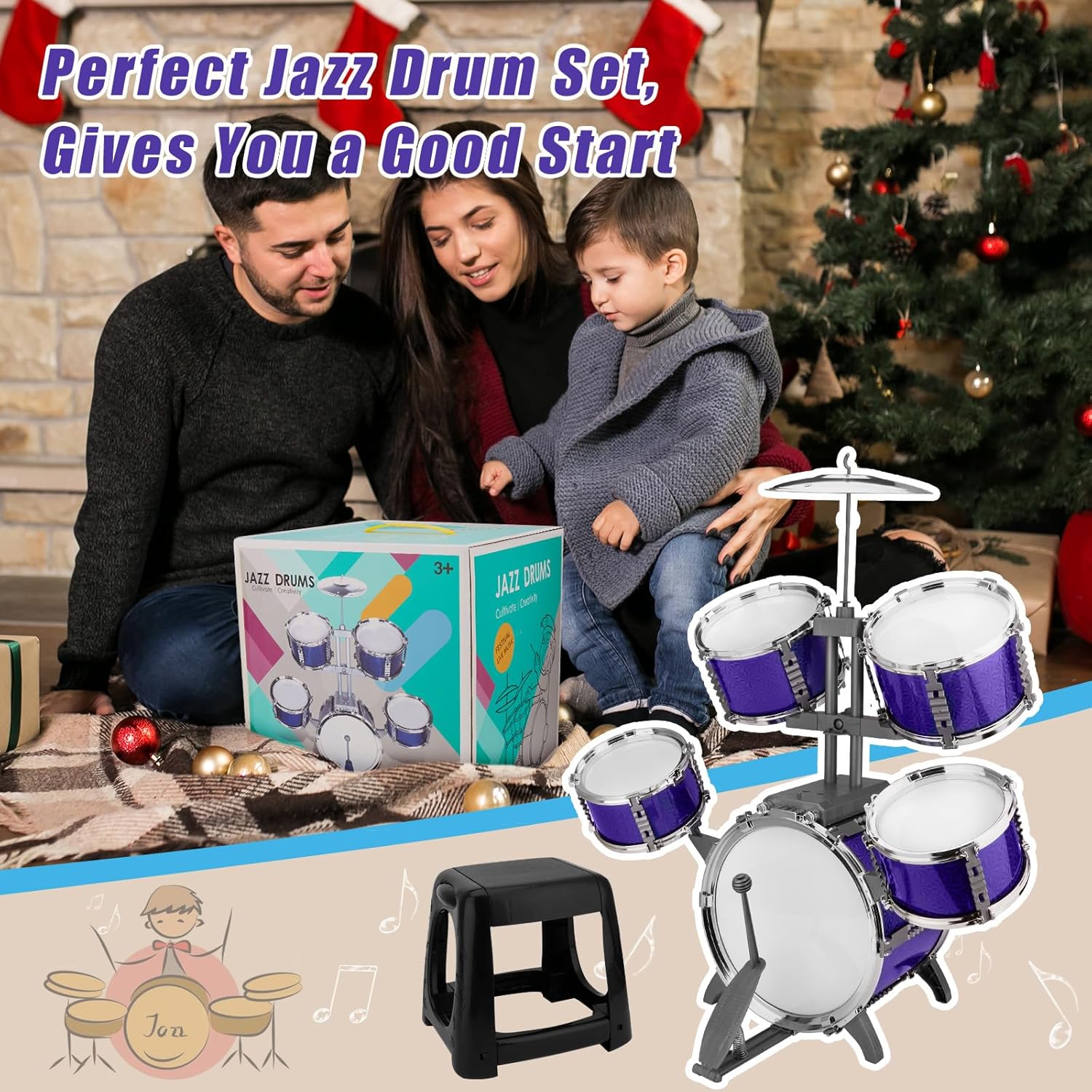 - 【Perfect Gift for Kids】Surprise your kids with this drum set as a birthday or Christmas gift. Not only will they have fun, but it will also help develop their musical interest and talent. Give your child a musical gift with this children's jazz drum set musical toy.