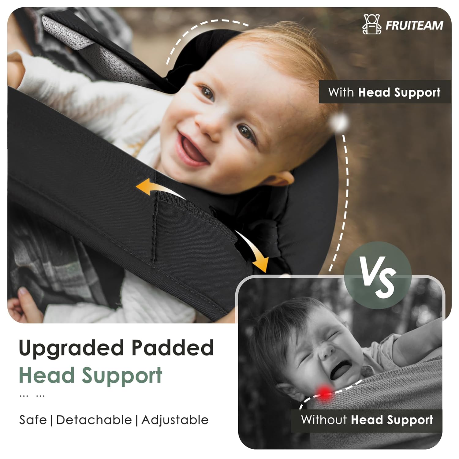 FRUITEAM Baby Carrier Newborn to Toddler, Safety-Certified Waist Stool with Hip Seat, Ergonomic 6-in-1 Baby Carrier with Head Support, Adjustable & Removable Baby Holder for All Seasons, Black