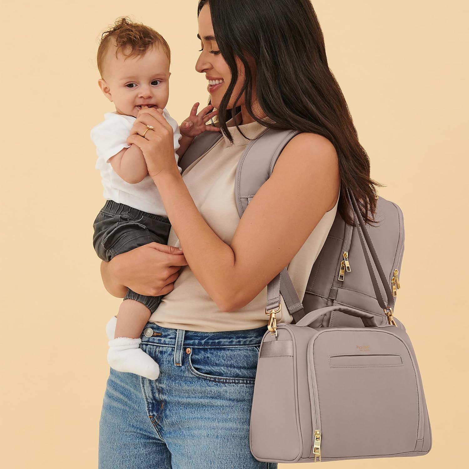 - DURABLE CONSTRUCTION: This chic and functional baby bag is crafted with longevity in mind. With durable lining and stain-resistant fabric, feel confident in knowing that this bag will stand the test of time.