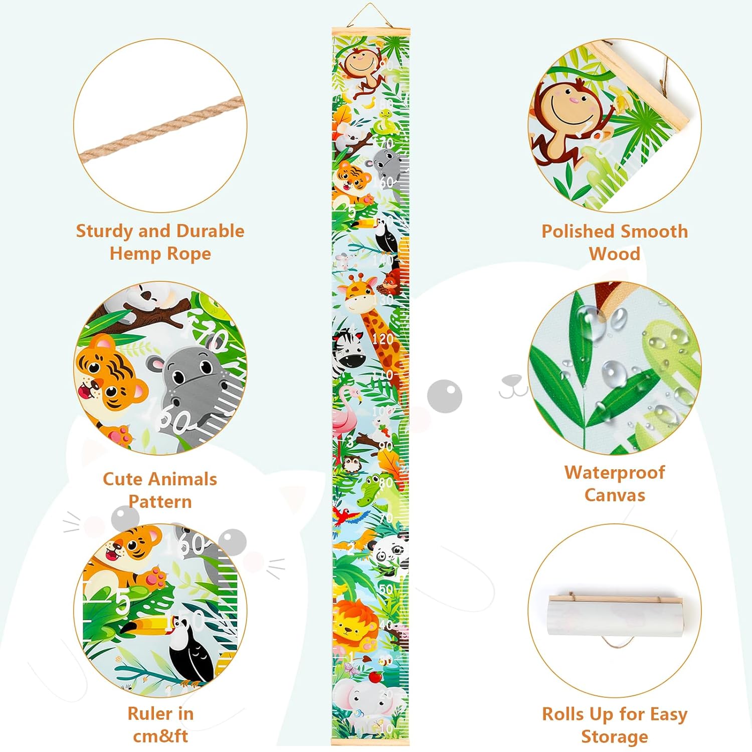 Kids Growth Chart Height Measuring Chart, Animal Jungle Canvas Wall Hanging Rulers for Baby Children Girls Bedroom Decor 74.8''* 7.87'' (Animal)