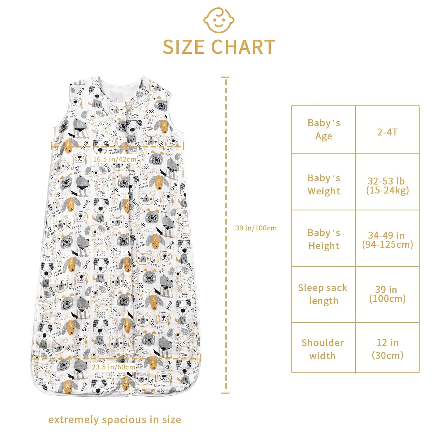 Baby Sleep Sack 2-4 T Baby Wearable Blanket 100% Organic Cotton 0.5 TOG Toddler Sleeping Sack 2- Way Zipper Soft Lightweight X-Large Pup