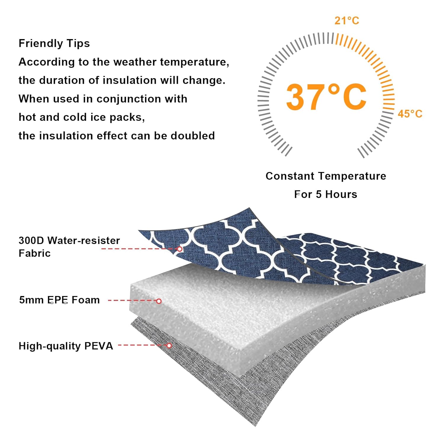 - KEEP COOL OR WARM EFFECTLLY: Insulated lining can keep bottles cool or warm, will help your food or drinks keep the optimal temperature.