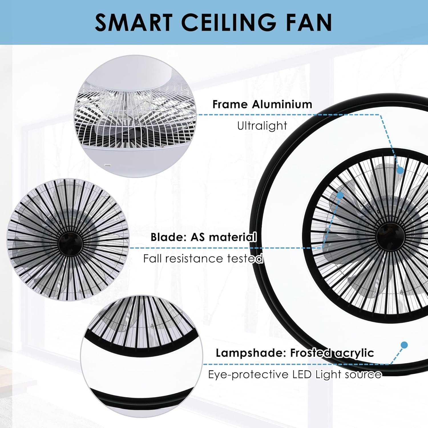 24" Bladeless Ceiling Fan with RGB Light Remote, Smart LED Ceiling Fans with Voice/App Control, Modern Low Profile Dimmable Light Ceiling Fan for Bedroom Living Room Black