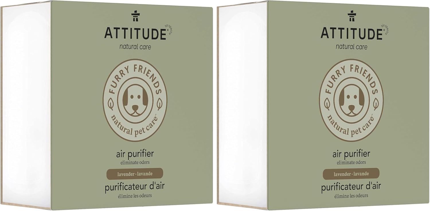 ATTITUDE Air Purifier with Activated Carbon Filter, Plant- and Mineral-Based Ingredients, Traps Pet Odors and Pollutants, Vegan and Cruelty-free, Lavender, 8 Ounces (Pack of 2)