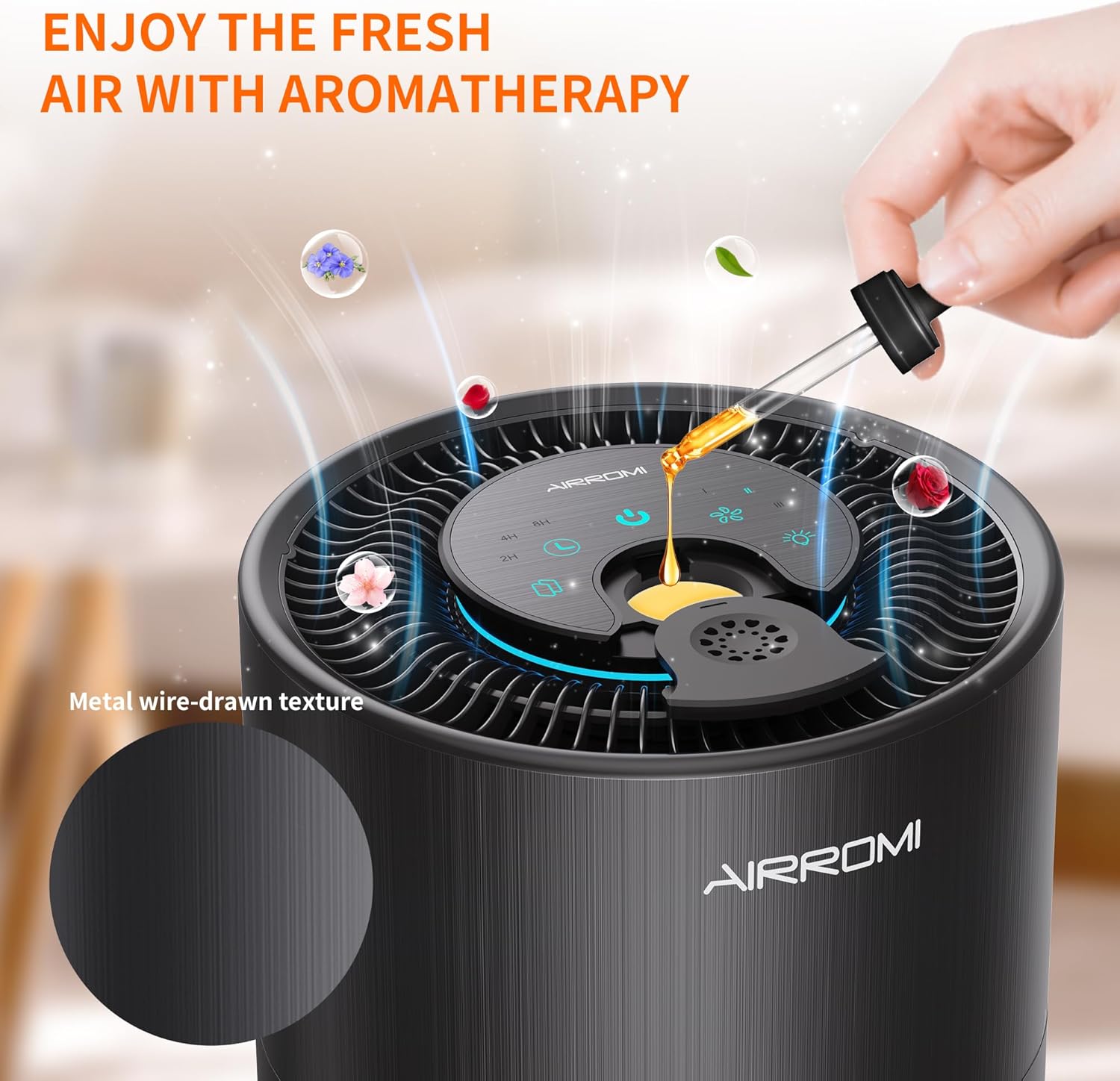 - 😊【Excellent Design】: According to carefully designed, AIRROMI air purifier has a high-end appearance, this is the first use in the air purifiers industry, we've achieved a dipped and brushed metal texture on appearance, giving the air purifiers a stylish and sophisticated look. Almost everyone will marvel at this portable air purifier.