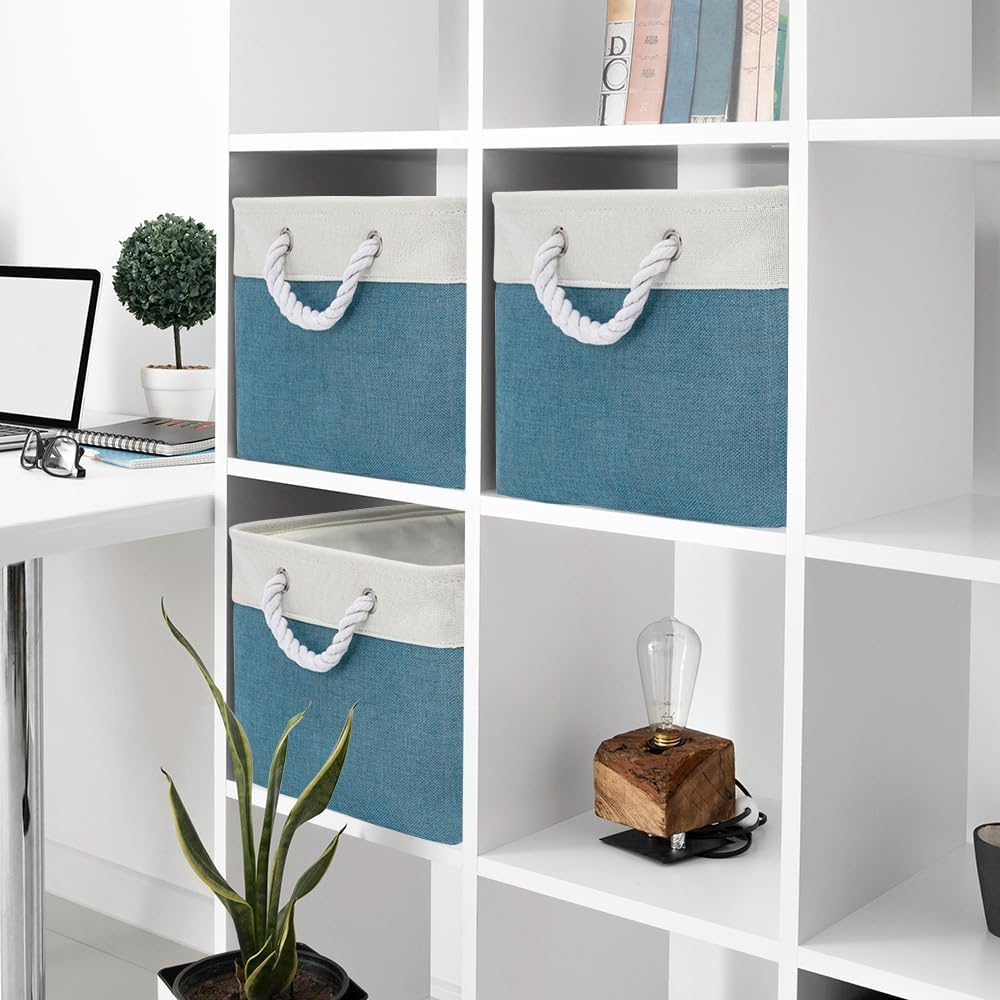 - With modern and stylish design, our storage baskets combine both of the decorative and practical forms. All of our baskets are made of fabric like cotton, linen. They are stylish, sturdy and reusable. These small storage bins can be a beautiful and functional accent to any room. They are not only household life good helpers but also charming decorations