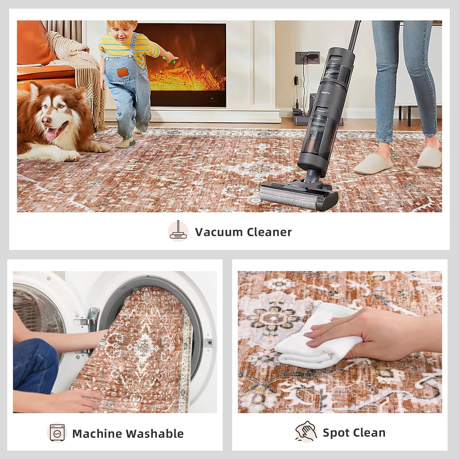 - [Non-Slip Backing]: The large area rug is made of snowflake-shaped TPE non-slip rubber backing takes more safety. The non slip rug is deal for everyday indoor locations where kids or pets are active.
