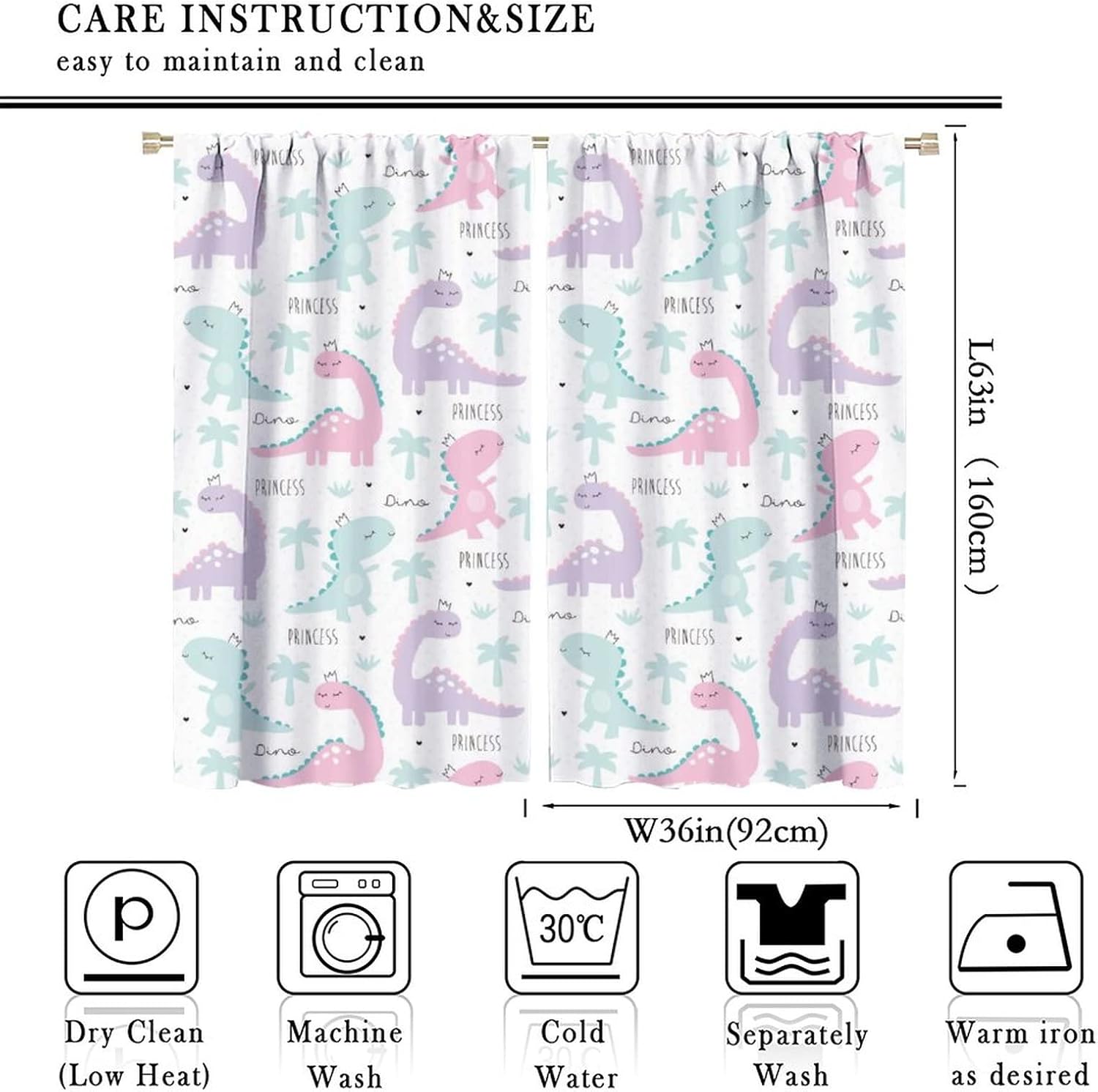 Kids Dinosaur Curtains for Boys Girls Bedroom Decor Cartoon Dino Colorful Cute Funny Animal Wildlife Printed Blackout Rod Pocket Window Drapes for Baby Nursery Playroom W36xL63in 2 Panels