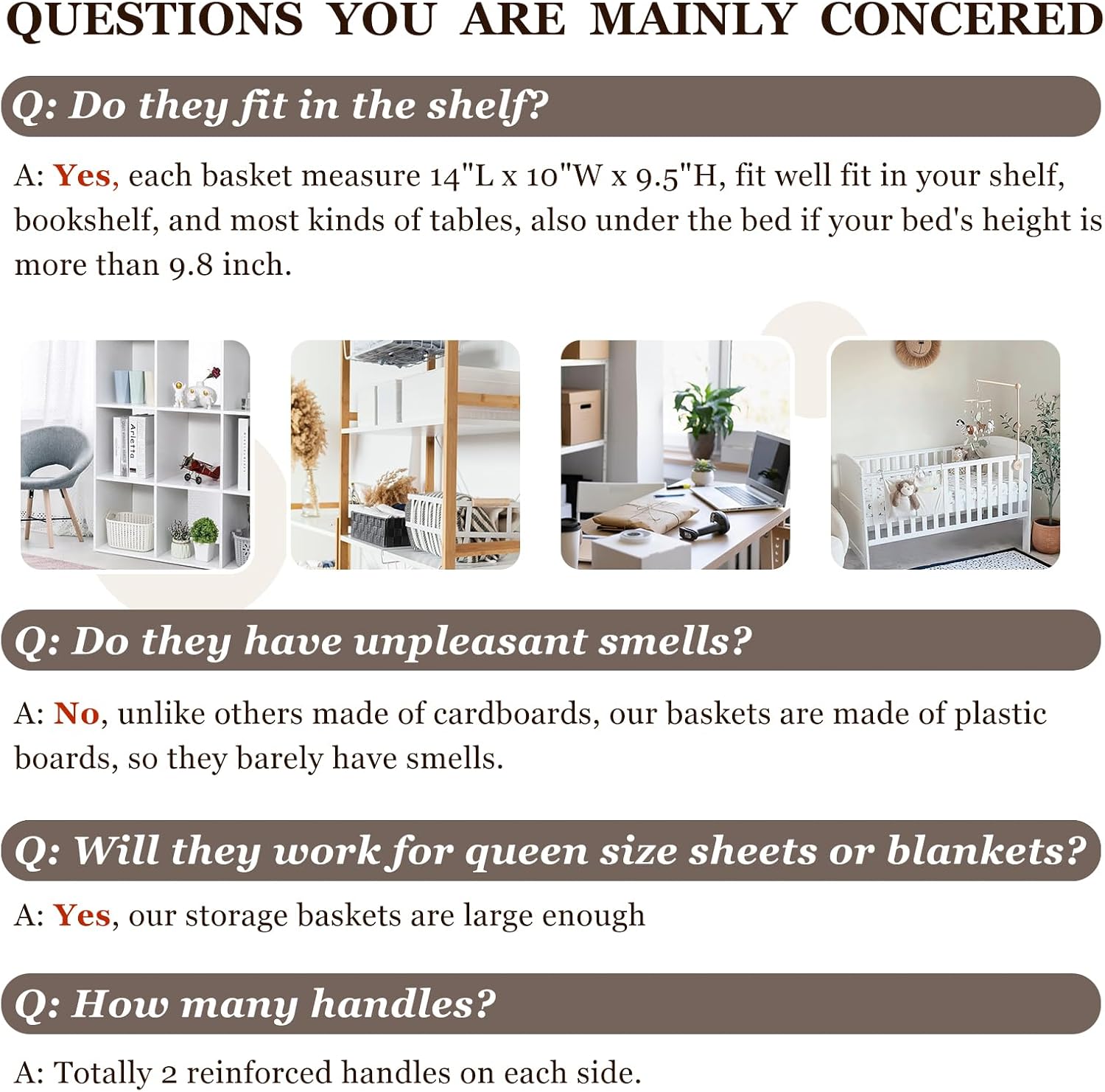 - 【FIT RANGE】 Comes with 4 pack for better value, these cloth storage bins could meet all your family storage needs, also for college dorm, RV, school, baby nursery. Measuring 14” (L) x 10” (W) x 9.5” (H), they could work as storage baskets for shelves, closet storage bins, shelf bins, under bed storage bins, or for changing tables.