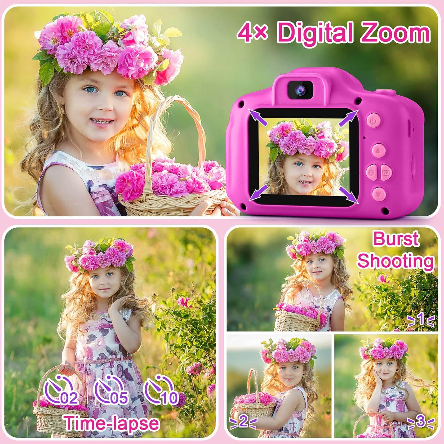 GKTZ Toys for Girls Age 3-8, Kids Camera Digital Video Toddler Camera Children Camcorder Birthday Gifts for 3 4 5 6 7 8 Year Old Girls with 32GB SD Card