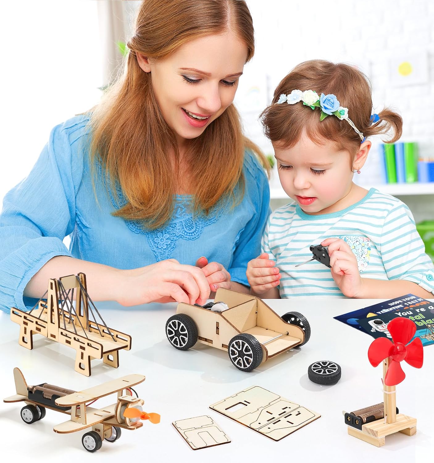- 【24 PCS Party Favors Set】Our stem kit project set include a Pull trolley, a glider, a Cable-stayed bridge, a electric fan, it`s great for kids age over 6 years old. Come and build your own engineering toys! Tips: AA BATTERIES ARE NOT INCLUDED.