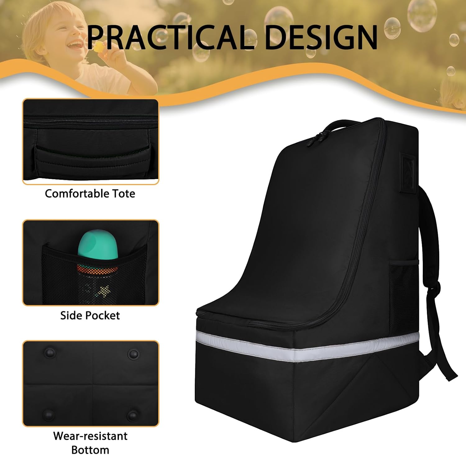 Car Seat Travel Bag for Airplane,Infant Seat Travel Bag with Shoulder Strap,Padded Car Seats Backpack with Reflective Stripes,Large Carseat Carrier Bag Travel Car Seat Cover, Black