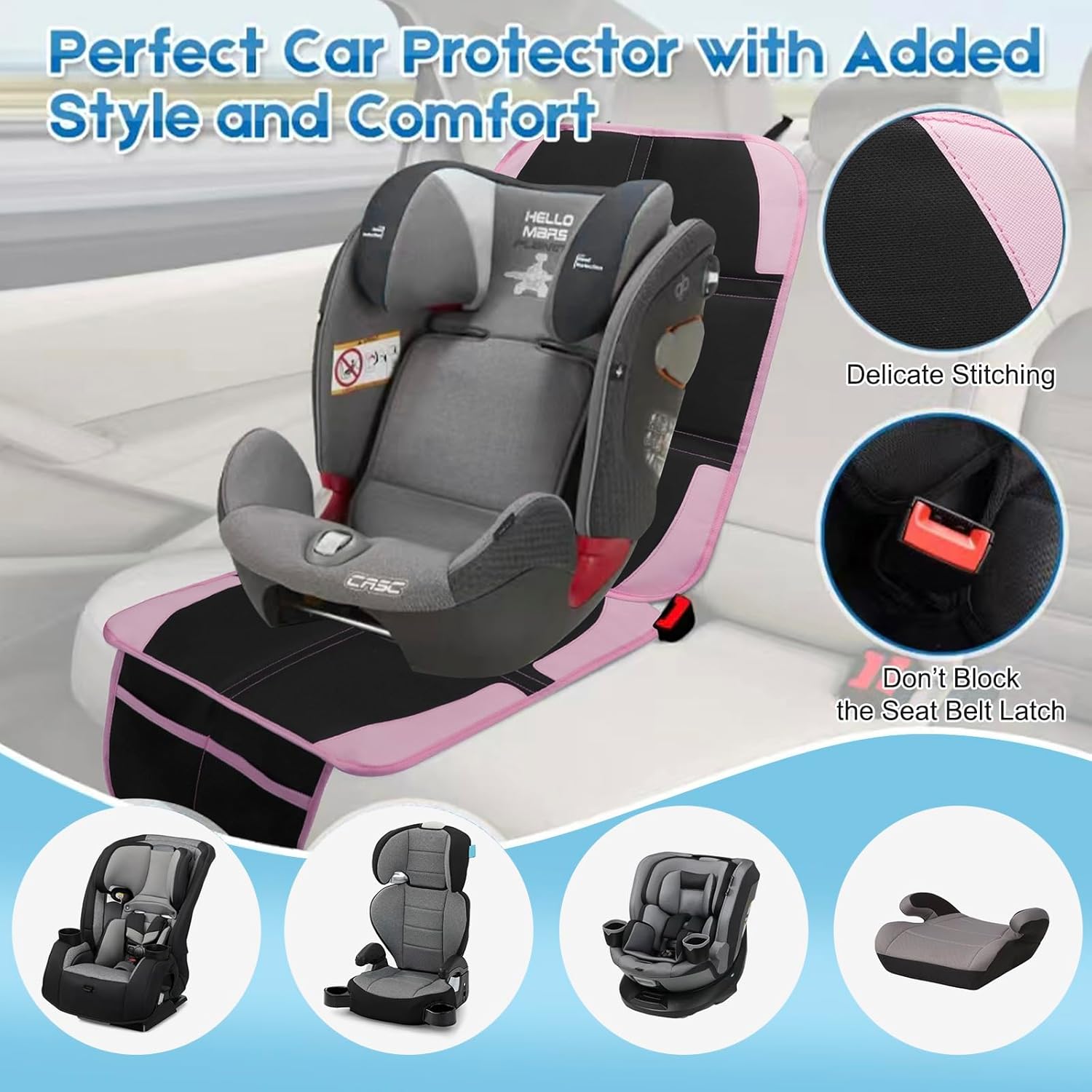 - Car seat protector covers for baby carseat made of waterproof durable 600D polyester with thick padding. Baby car seat cover can protects the back seat of the car from wear and tear of the child seat, make us comfortable while traveling