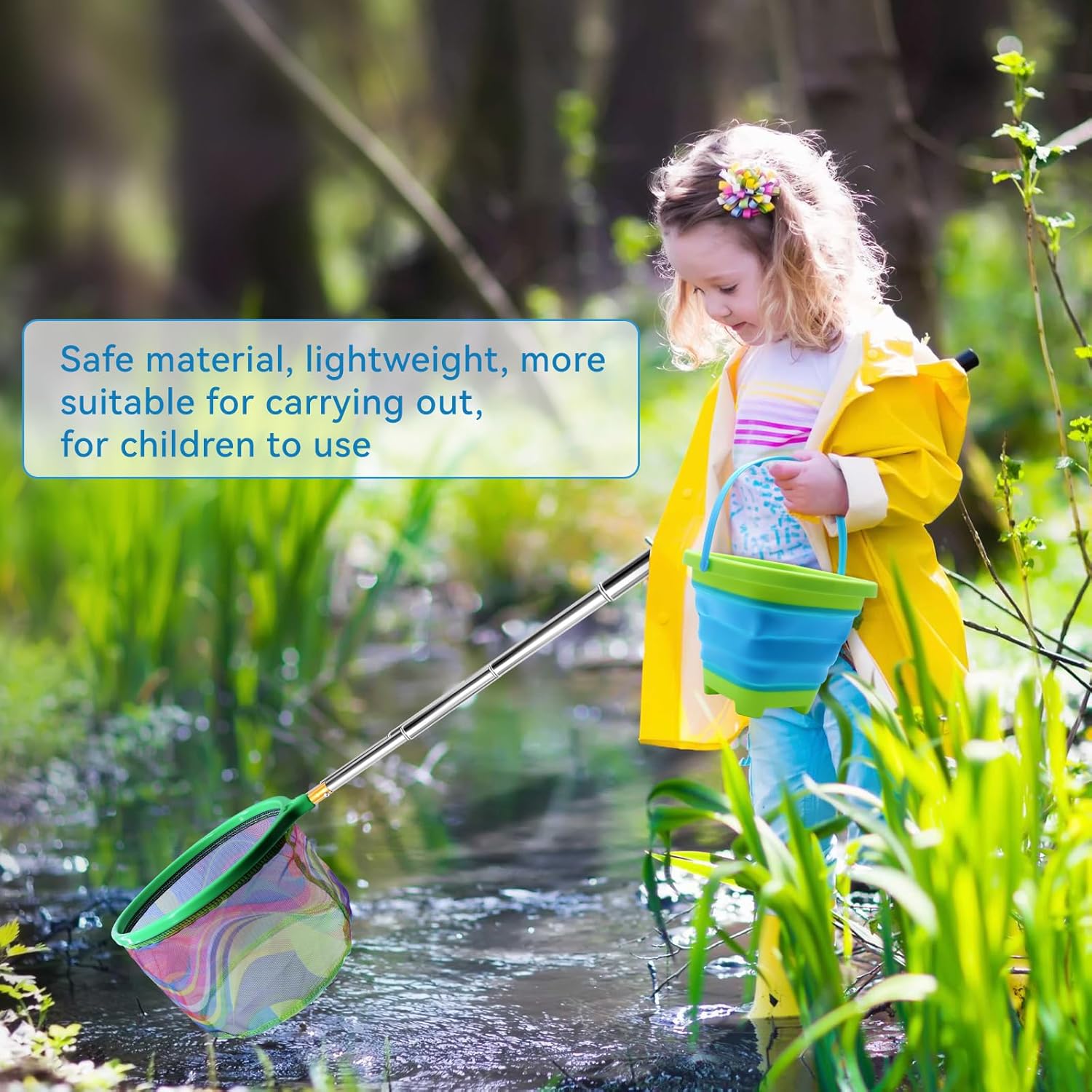 - Lightweight and Durable: The fishing net are detachable and easy to install. Made of sturdy stainless steel material, the kids fishing net is lightweight, effortless for children to use