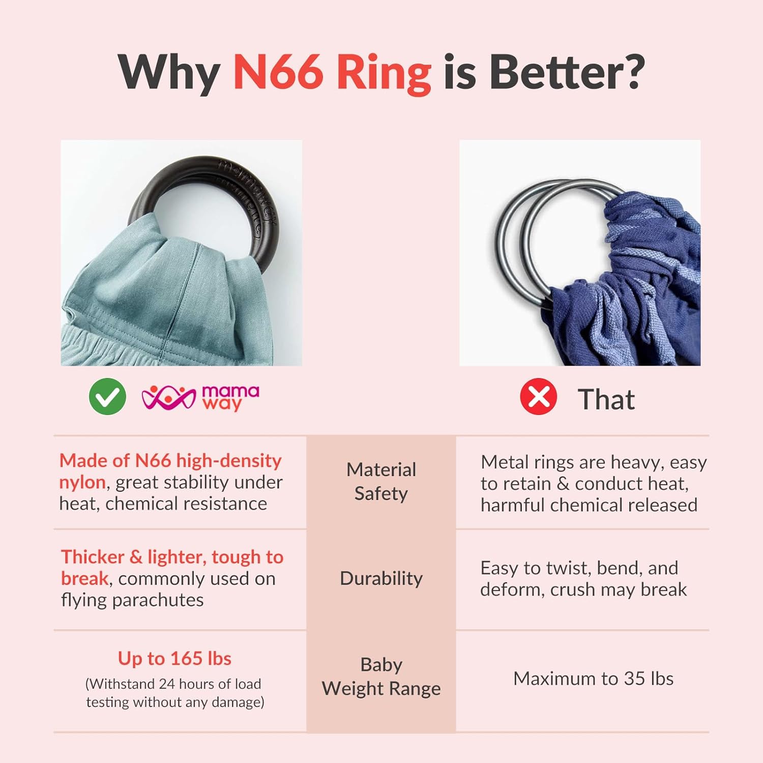 - SAFEST CARRY POSITION FOR CORRECT HIP DEVELOPMENT - Mamaway's ring slings are IHDI certified, featuring superior ergonomic design to evenly distribute baby's weight, relieving strain on shoulders and neck. Adjustable for various carries, it promotes bonding and child development, ensuring proper hip and leg development while enhancing comfort for both caregiver and baby. Front carry aids digestion and prevents reflux and colic.