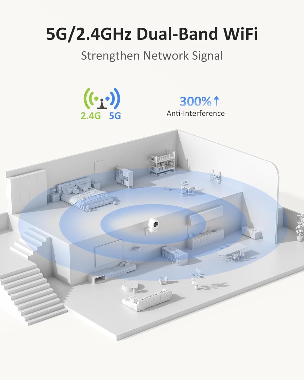 - Stable Dual-Band & Simple Plug-and-Play – A dual-band (2.4 GHz/5 GHz) Wi-Fi connection ensures a stable network signal, eliminating interference. Setting up is effortless: simply connect to your Wi-Fi router. No network cables are required.