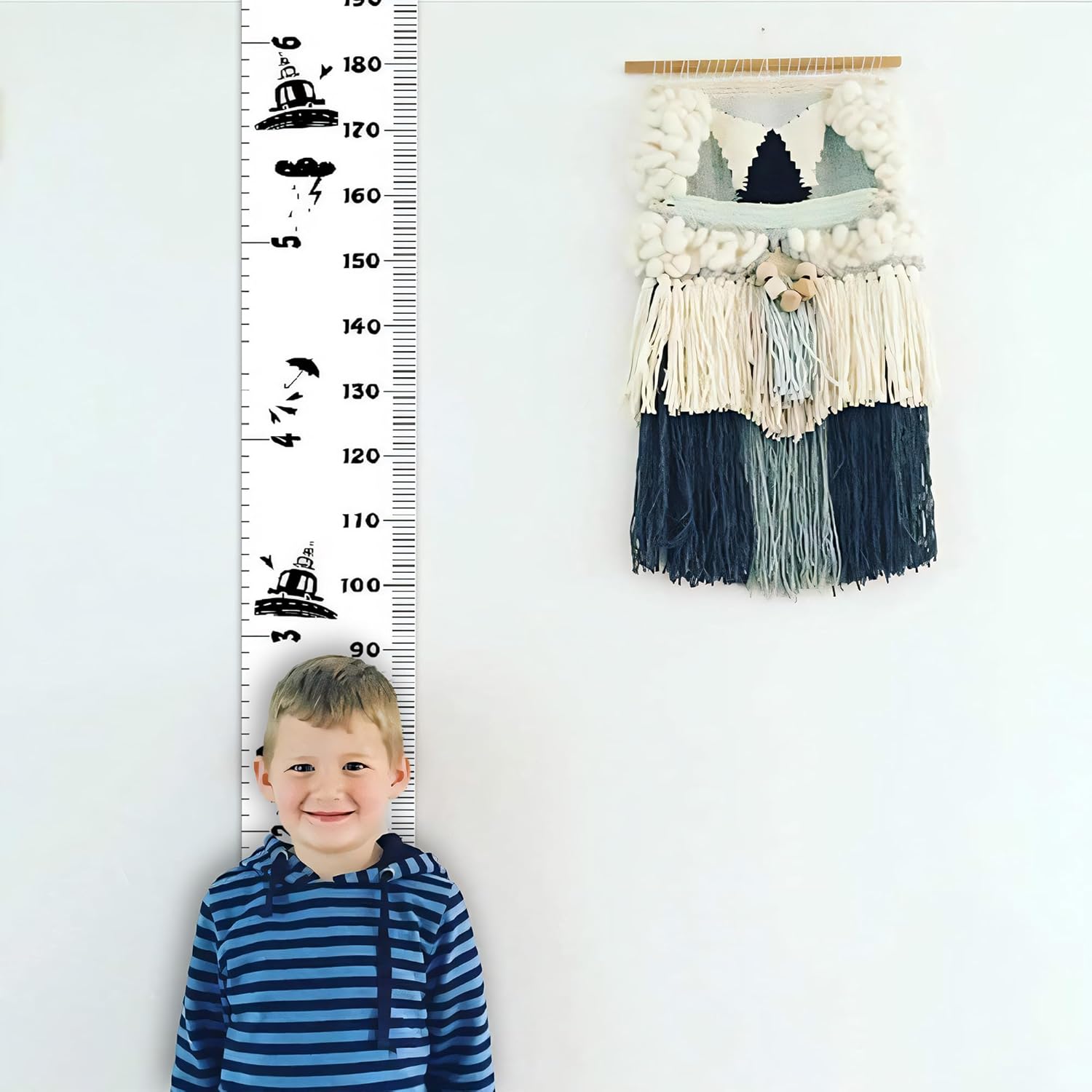 Kids Growth Chart, Wood Frame Fabric Canvas Height Measurement Ruler from Baby to Adult for Child's Room Decoration 7.9 x 79in (7.9 x 79in, Black Car)