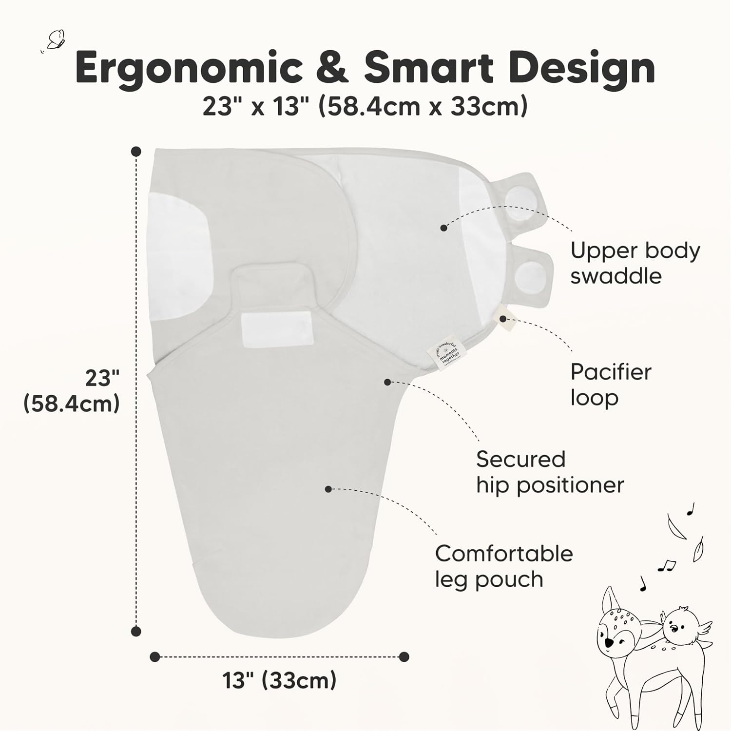 - Ergonomic for Newborn Growth - Certified as a hip-healthy product by the International Hip Dysplasia Institute (IHDI), the KeaBabies Soothe Baby Swaddle Sack provides ergonomic hip support for an infant's first 6 months of growth.